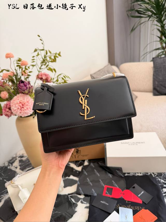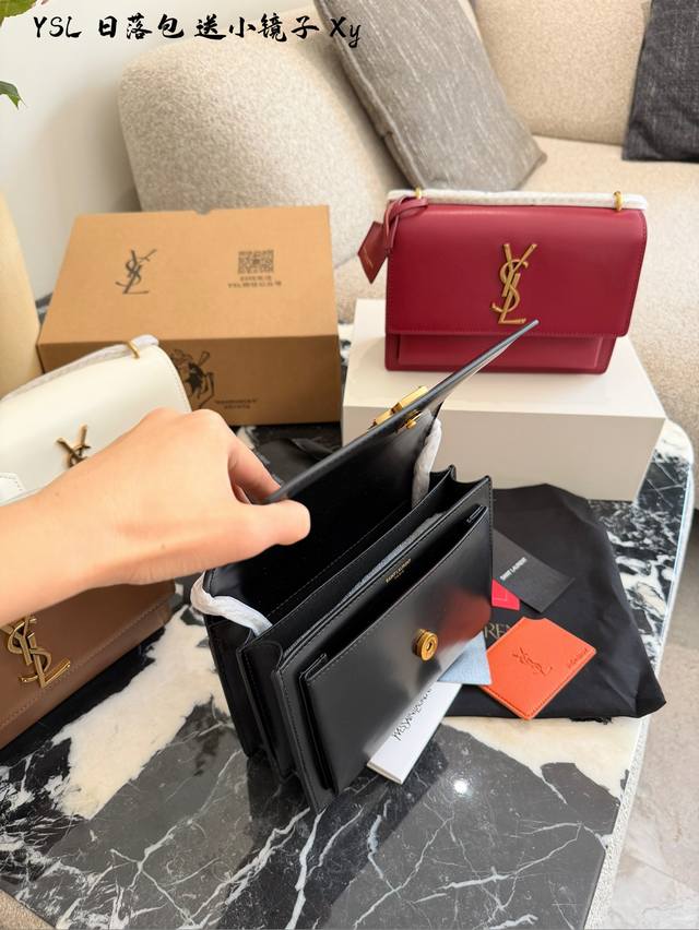 YSL Sunset Bag, Medium Size. This YSL Sunset bag is made of medium-sized calfskin with a gold logo, exuding simplicity and sophistication. Measuring 25