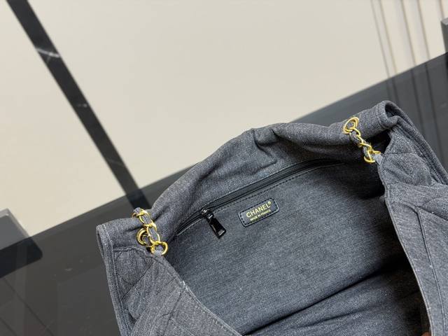 Top Original Order With Folding Box Size 35.33 Chanel Denim Chain Tote Bag Fashi