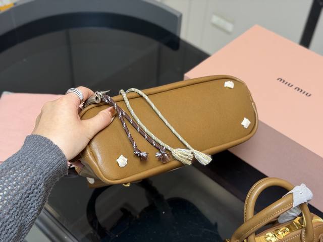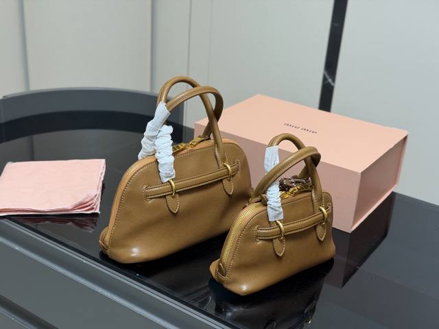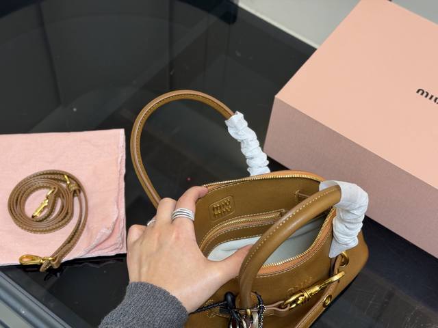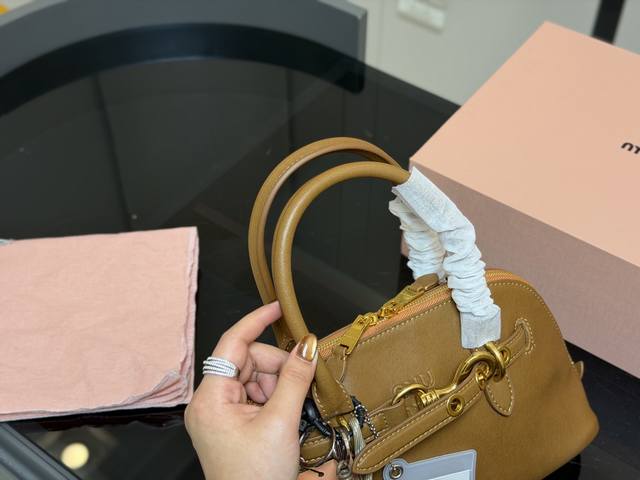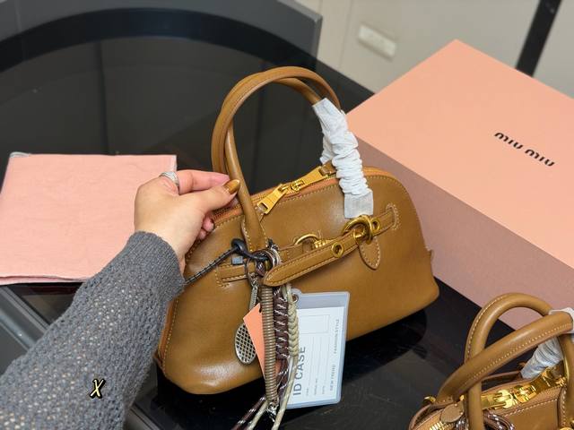 Comes with a folding box DDD Miu Miu Aventure Shell Bag DDD Made of soft Nappa leather, the half-moon shape is super classic! DDD The gold ring and woven knot design is playful and distinctive. DDD The detachable long shoulder strap is great for hand-carrying, shoulder carrying, or crossbody wear, DDD easily switching between different occasions and styles~ Small and exquisite, DDD It's versatile enough for everyday outings or dates! DDD Dimensions: 29.16Cm 21.12Cm DDD