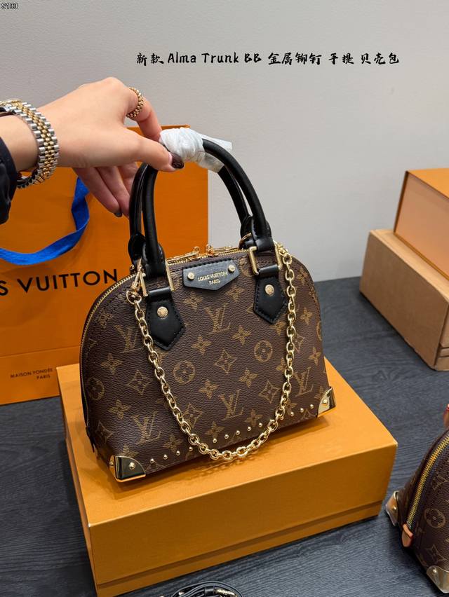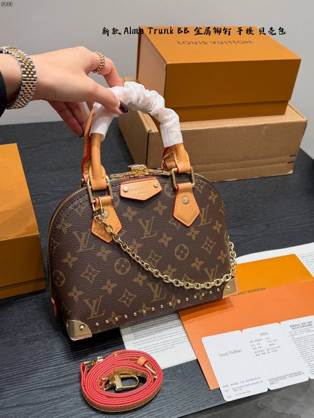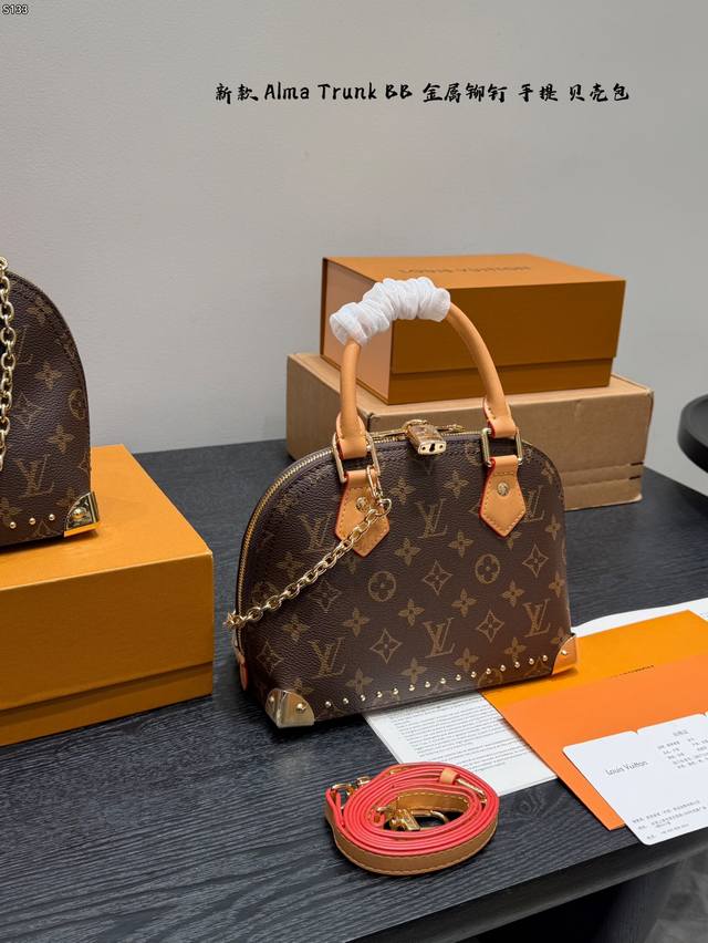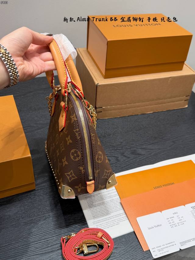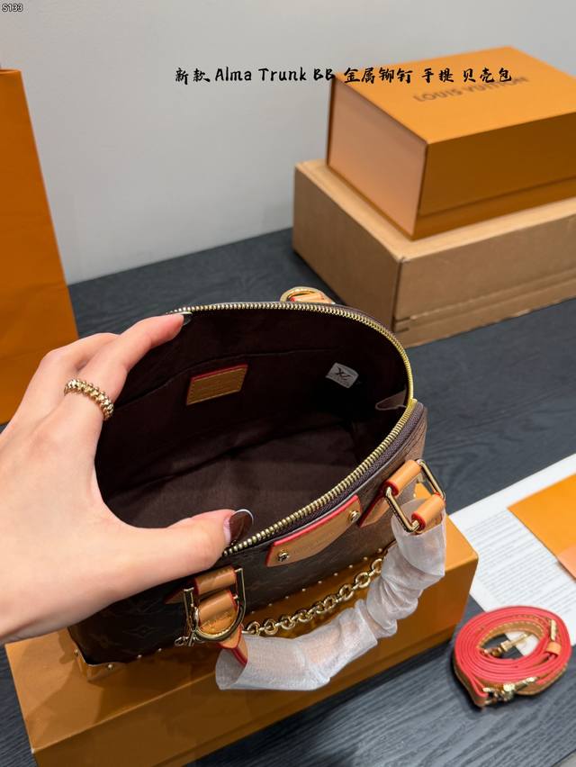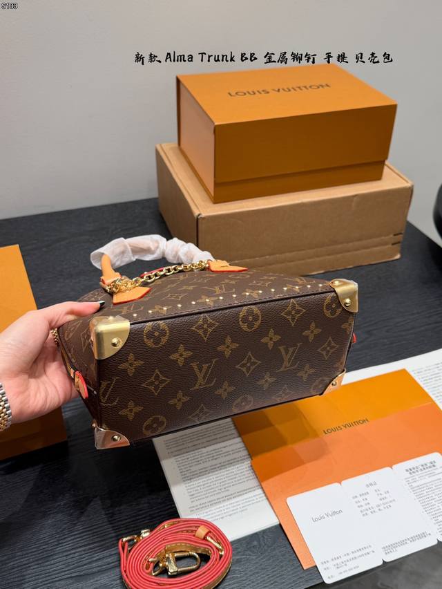 Gift Box Packaging DDD Size 22*17Cm DDD New LV Alma Trunk BB Shell Handbag DDD Classic Monogram canvas + natural cowhide trim, top-notch quality! Inspired by LV travel trunks, it features metal rivets, S-Lock closure, bottom feet, and a detachable shoulder strap, combining retro and modern styles. The perfect size for commuting. Multiple carrying options: hand-carry, shoulder bag, or crossbody, practical and distinctive, a popular classic LV style DDD