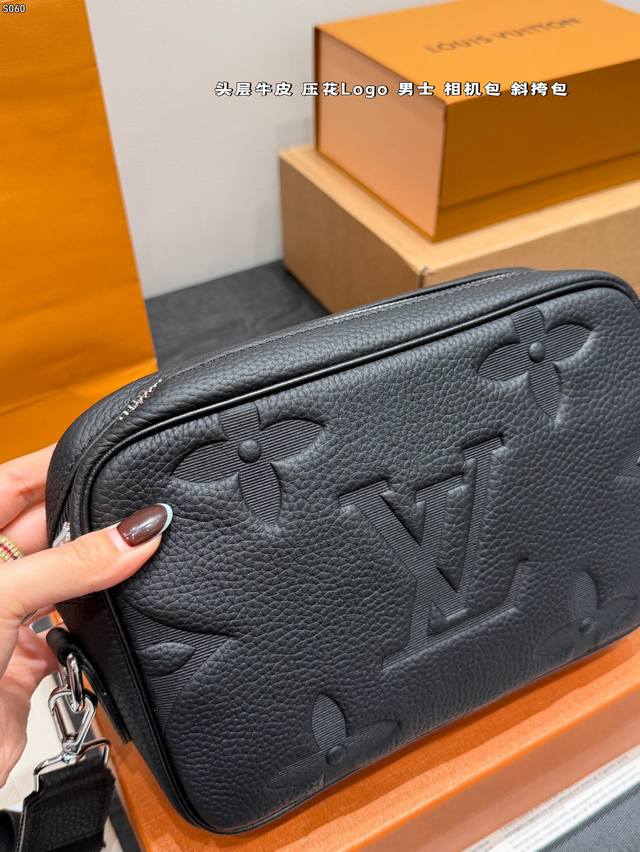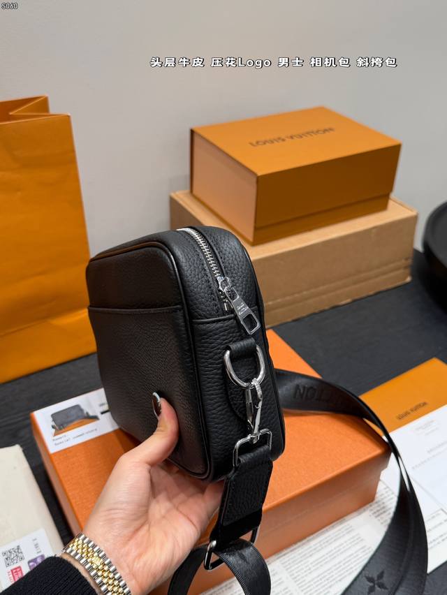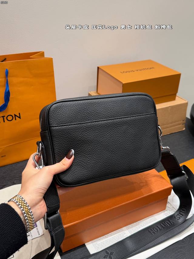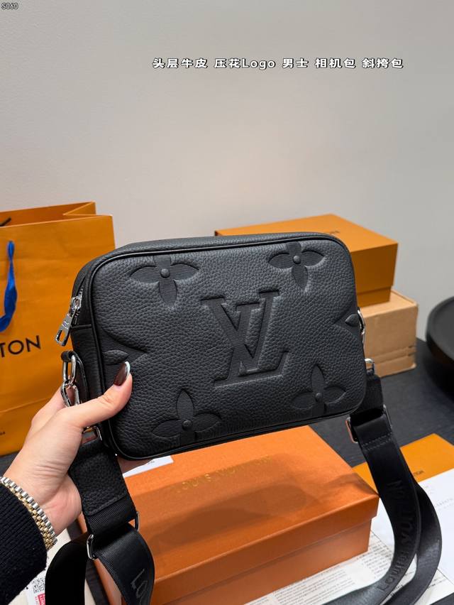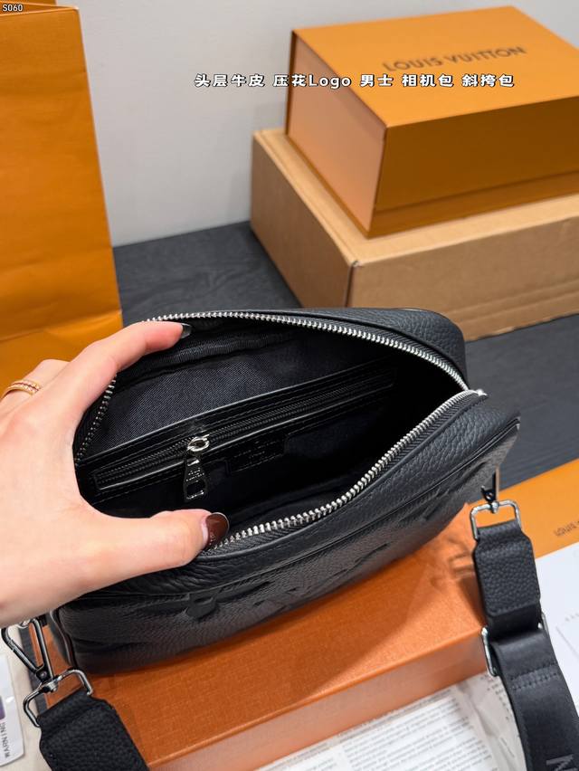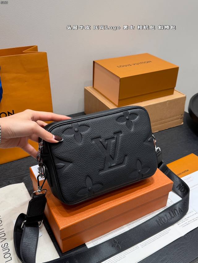 Gift Box DDD Top Layer Cowhide DDD Size: 23*14Cm DDD Lv Embossed Latest Style Men's Camera Bag Black Warrior Style So Cute Little Messenger DDD Really High Cost Performance DDD Ladies, You Can Arrange This for Your Boyfriend DDD