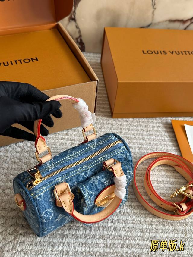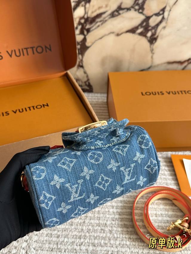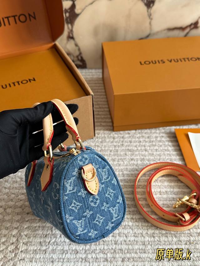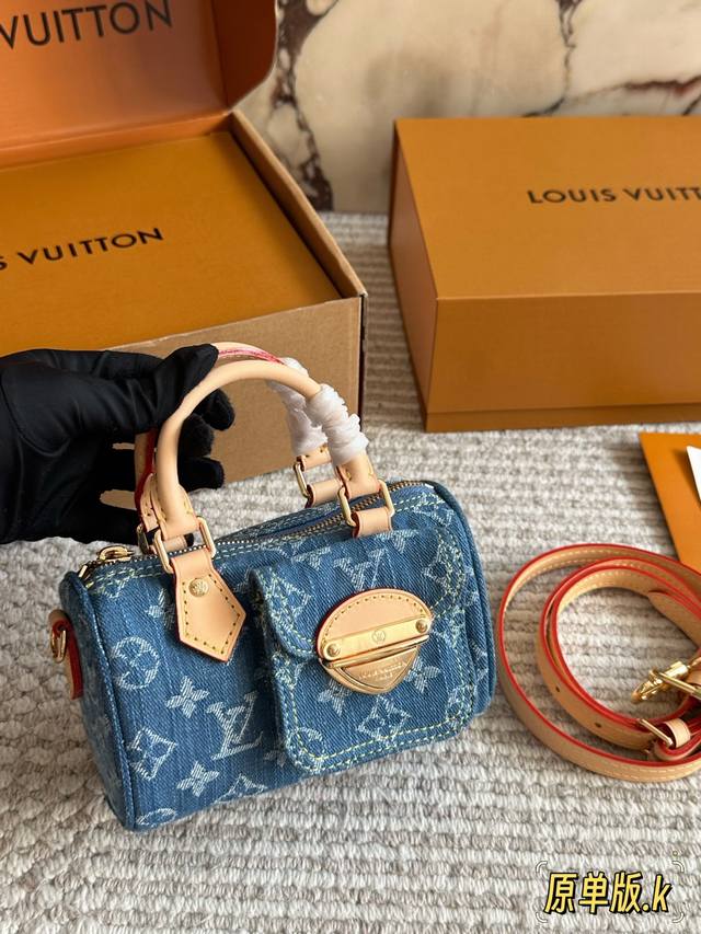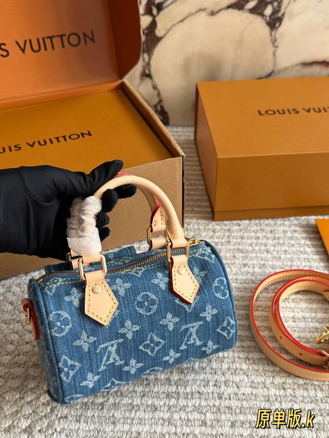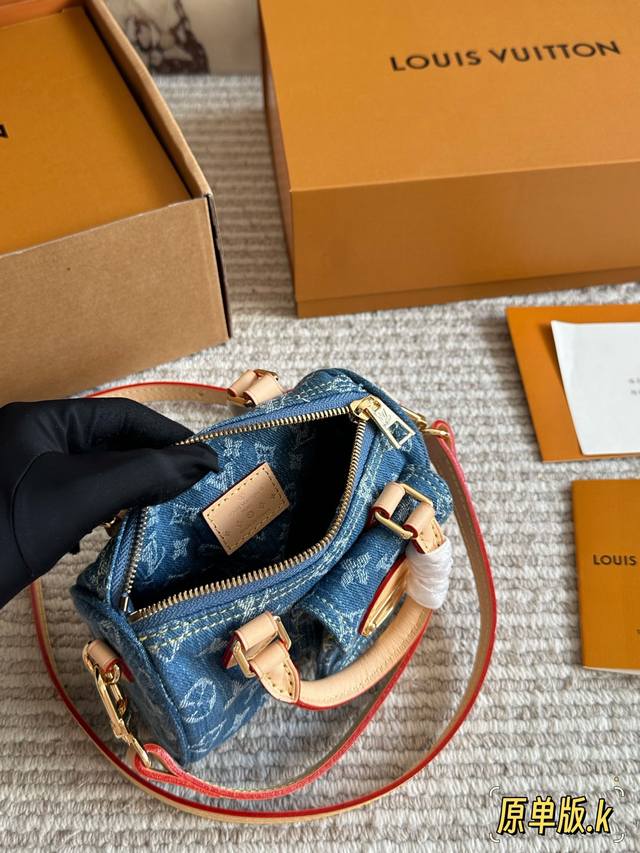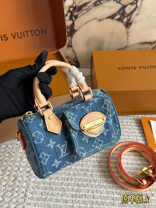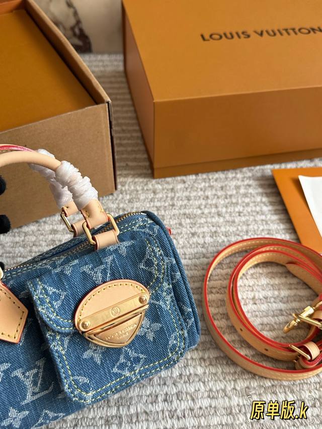 Lv Original Single Version with Gift Box DDD Retro Denim Mini Pillow Denim Bag Yyds Casual and Stylish DDD The fashionable retro denim fabric is so beautiful! I couldn't wait to take it out to an exhibition and take beautiful photos after receiving it DDD The soft and lightweight denim fabric is casual, stylish, and street-style. I specially chose the classic Nano Speedy handbag DDD This bag can be sweet or edgy and can easily match various styles. It looks small and exquisite, but the bag capacity is quite good. Size 17 x 10 cm DDD