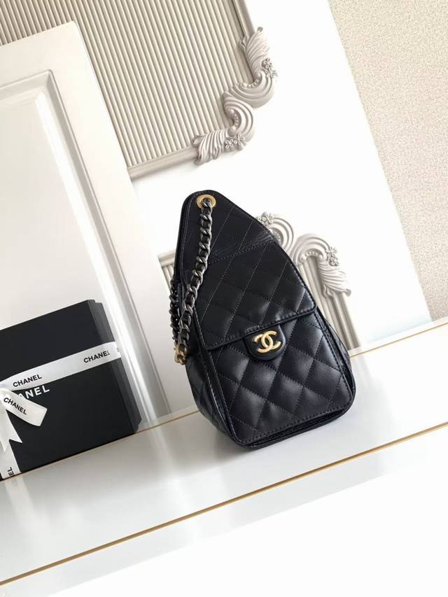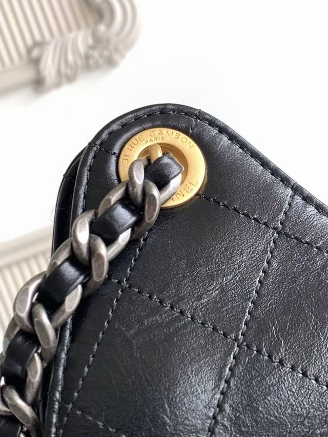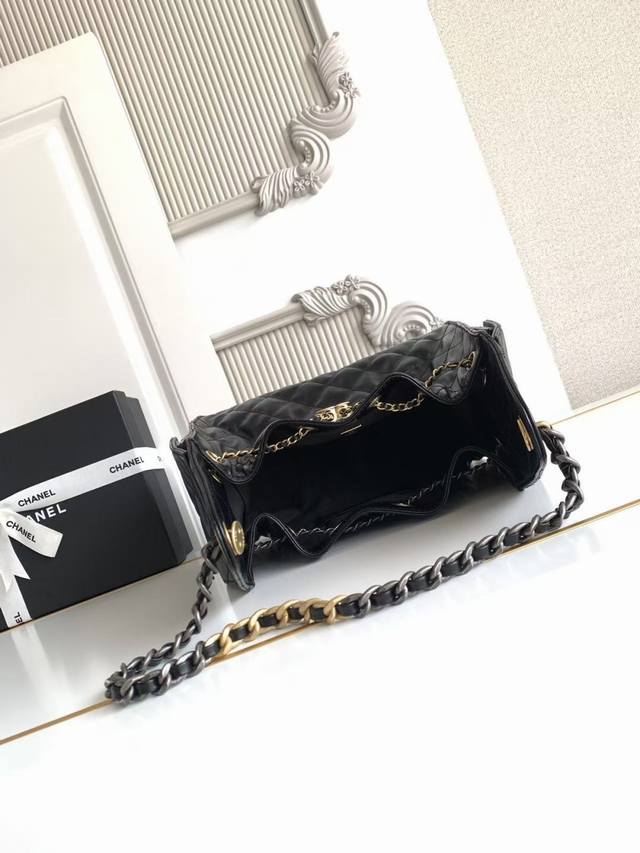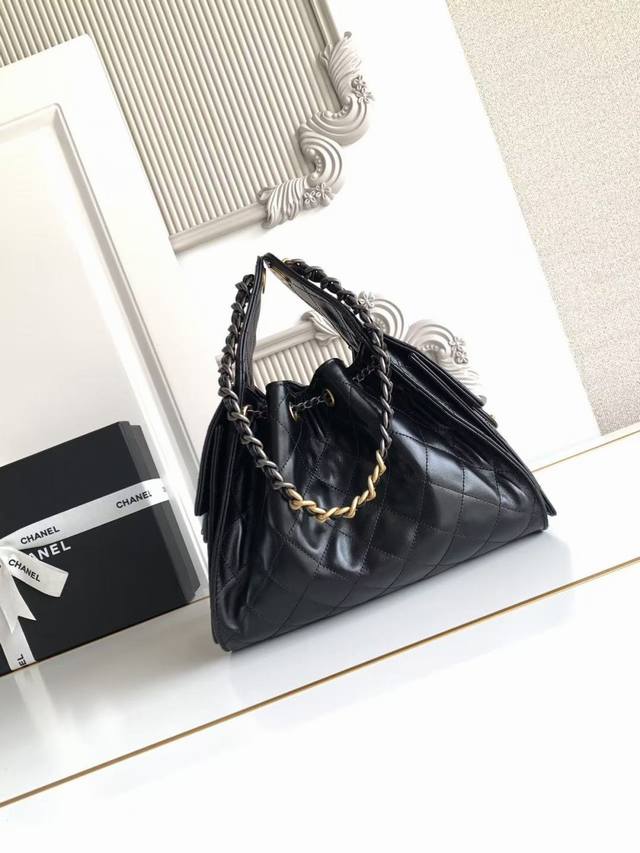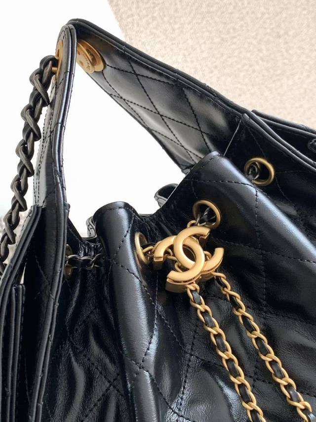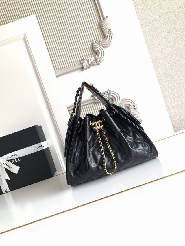 As5293 Chanel 25C : Another bag named after a year. This Chanel Hobo bag, made of waxed leather, is a small, retro-style bucket bag with a two-tone design, metal buttons, and a classic quilted chain. It exudes sophistication! A must-have for everyday wear, it boasts a beautiful appearance and delicate texture, easily complementing both casual and formal occasions. Dimensions: 30 x 26 x 14 cm.