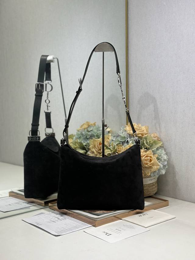Authentic, High-Quality Version Christian Dior 2026 Spring/Summer Medium Handbag Series # Black Velvet and Leather with Silver Buckle Jonathan Anderson's first women's collection as creative director of Dior . Inspired by Christian Dior's brand history archives, Dior emphasizes that this design is a collection of symbols from the fashion house's long history, expressed in a fragmented way. Fragmentation is perhaps the most fitting description of this season in Dior's official press release, indeed a design technique often used by Jonathan Anderson. The classic New Look silhouette is reinterpreted. Model: 1412 Size: 33