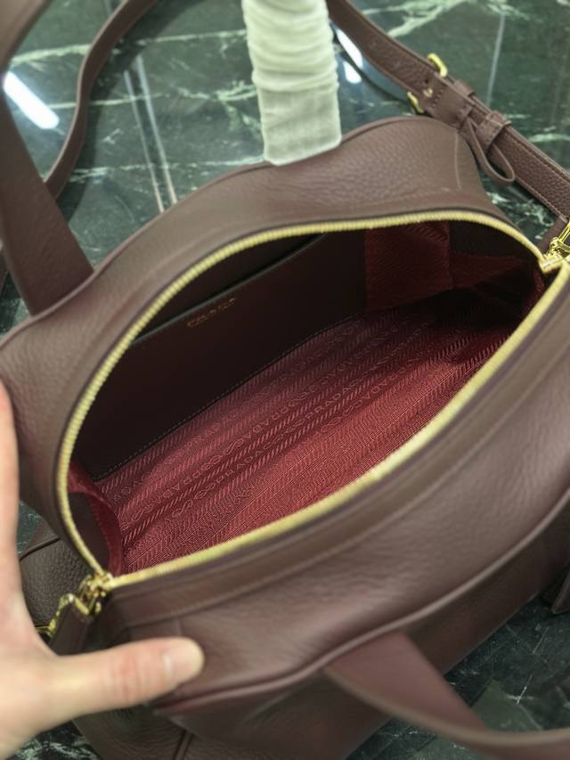 Authentic Ddd New Handbag. This top-handle bag, crafted from natural grain leather, features a reinterpreted soft silhouette and can be carried by hand or worn with a detachable shoulder strap. It comes with two detachable tags. Metal hardware. The front features an embossed logo, a zip closure, and two pockets, one of which is zipped. Ddd Model: 1Bb148 Ddd Dimensions: 33X22X14Cm DDD Ddd