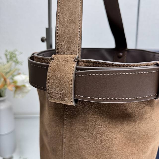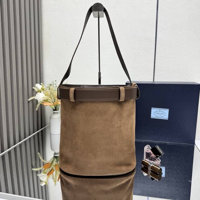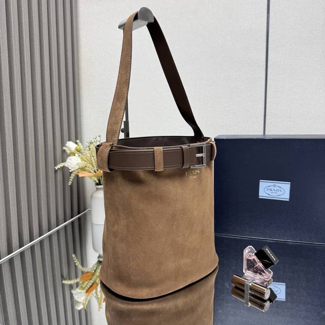 Authentic Ddd Top-Grade Original New Suede Bucket Bag 1Be085 This stylish suede cowhide bucket bag offers a fresh take on the Buckle handbag silhouette, crafted from imported calfskin and imported lambskin. It features a leather strap with a detachable classic buckle, allowing for versatile styling. A perfect finishing touch to any modern look. Spacious, practical, and fashionable, grab yours now! Dimensions: Length 26.5 x Height 29 x Base 18 cm DDD
