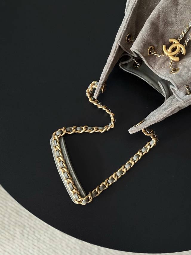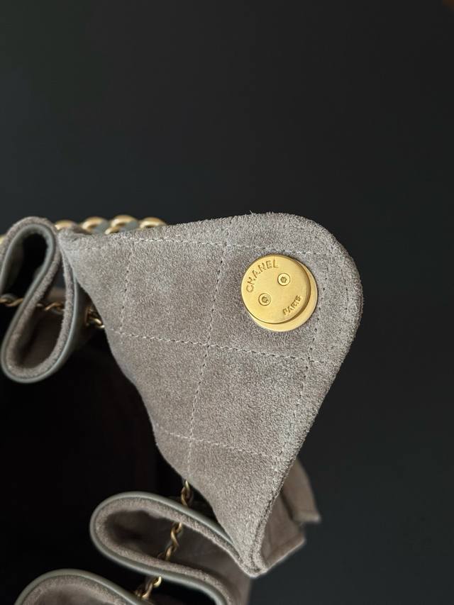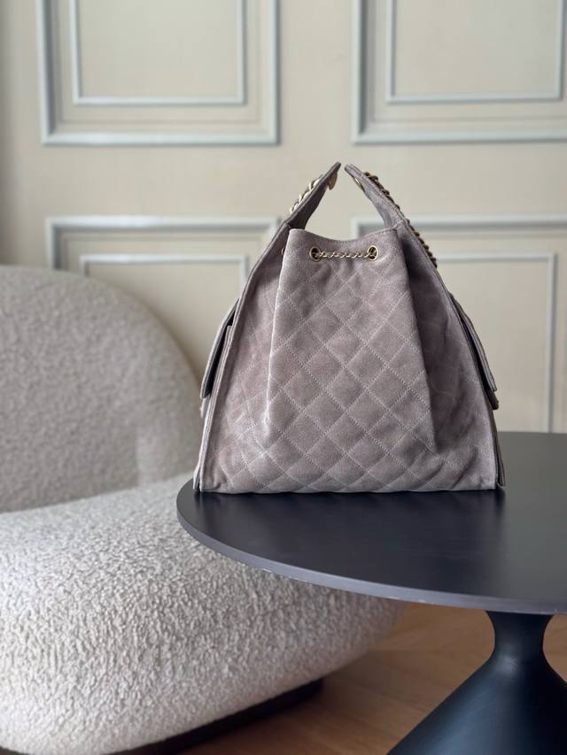 Brand new, original high-quality version. Early spring hippie shopping bag, large size, 0 purchase, developed by unclear - possibly a company name]. 25C, the hottest Chanel leather hippie bag of the year. Chanel Hobo shoulder bag, hippie shoulder bag, small size. Retro gold coin button drawstring bucket bag + quilted pattern + retro black and gold. Classic chain design, full of high-end feel! A must-have for daily outings, exquisite appearance, delicate texture, easily handles both casual and formal occasions. A hot runway item, the unique design of this hippie shopping bag has a very domineering style. Its super large capacity easily holds daily necessities, making it a high-value partner for shopping and travel. Hardware: Thick retro gold plating. Leather: Imported suede. Size: 403015. Model: As5311.