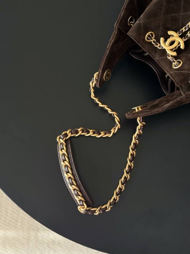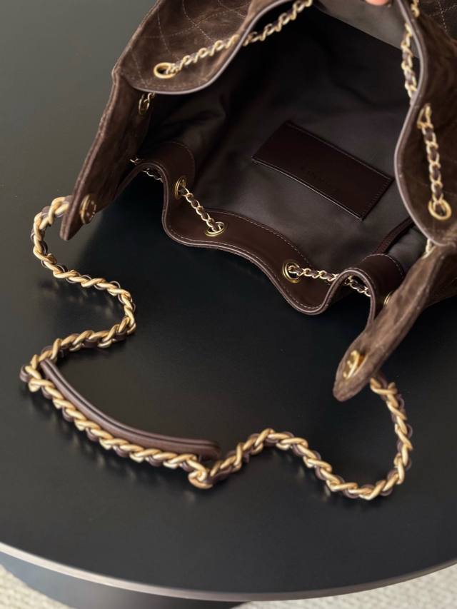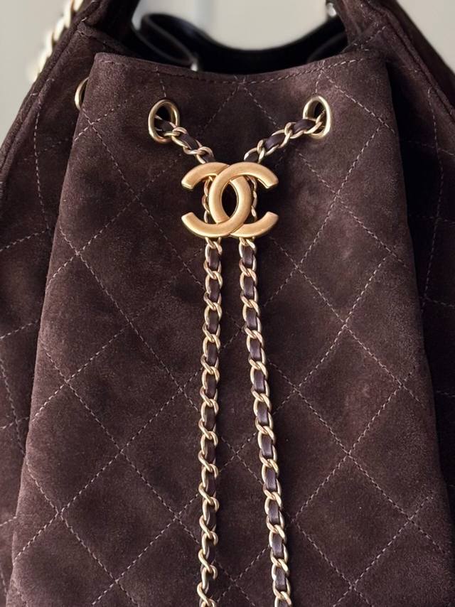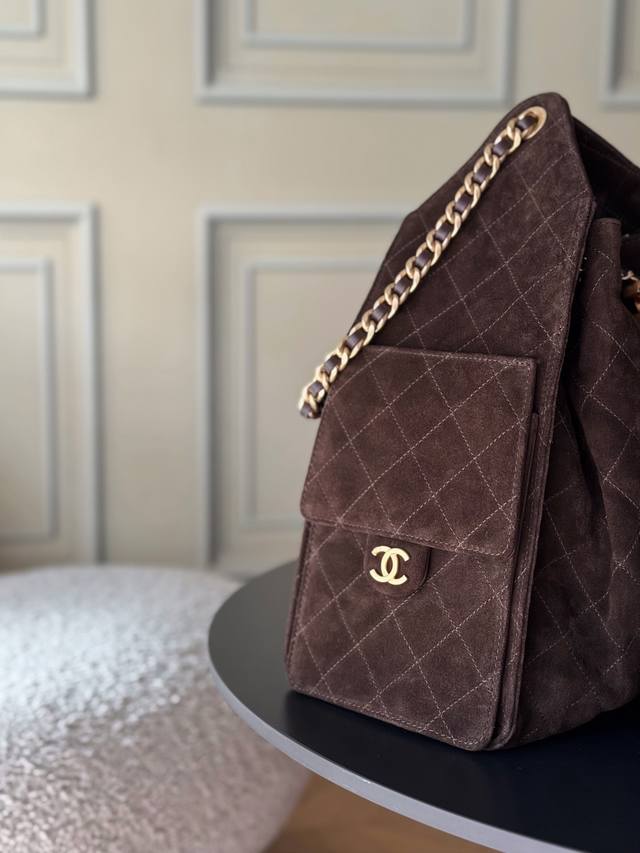 Brand new, original high-quality version. Early spring hippie shopping bag, large size, 0 purchase, developed by unclear - possibly a company name]. 25C, the hottest Chanel leather hippie bag of the year. Chanel Hobo shoulder bag, hippie shoulder bag, small size. Retro gold coin button drawstring bucket bag + quilted pattern + retro black and gold. Classic chain design, full of high-end feel! A must-have for daily outings, exquisite appearance, delicate texture, easily handles both casual and formal occasions. A hot runway item, the unique design of this hippie shopping bag has a very domineering style. Its super large capacity easily holds daily necessities, making it a high-value partner for shopping and travel. Hardware: Thick retro gold plating. Leather: Imported suede. Size: 403015. Model: As5311.