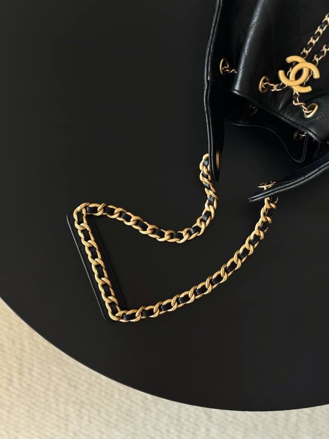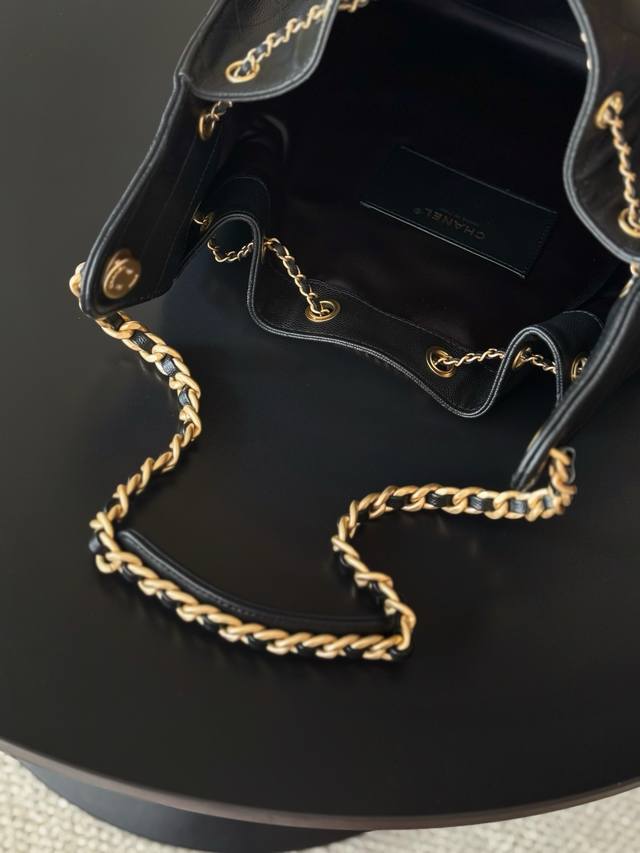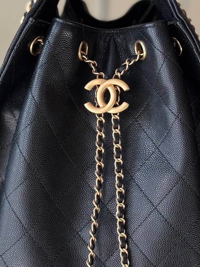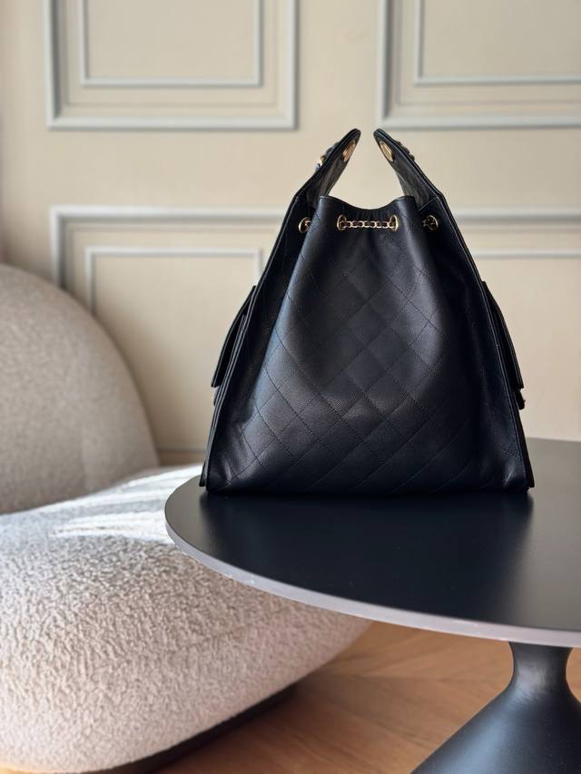 Brand new, original high-quality version. Early spring hippie shopping bag, large size, 0 purchase, developed by unclear - possibly a company name]. 25C, the hottest Chanel leather hippie bag of the year. Chanel Hobo shoulder bag, hippie shoulder bag, small size. Retro gold coin button drawstring bucket bag + quilted pattern + retro black and gold. Classic chain design, full of high-end feel! A must-have for daily outings, exquisite appearance, delicate texture, easily handles both casual and formal occasions. A hot runway item, the unique design of this hippie shopping bag has a very domineering style. Its super large capacity easily holds daily necessities, making it a high-value partner for shopping and travel. Hardware: Thick retro gold plating. Leather: Caviar cowhide. Size: 403015. Model: As5311.