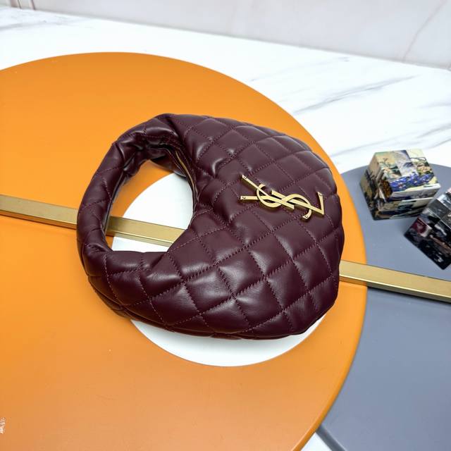 Burgundy Lambskin Gold Ddd Icare Baby Nappa Lambskin Handbag. The highly anticipated croissant-shaped bag has arrived, adorned with the iconic metal logo, perfectly blending vintage and modern styles, making it one of the most anticipated It Bags of the season. Whether for everyday outings or evening parties, this bag is effortlessly versatile! Ddd Model: 851689 Ddd Dimensions: 17cm