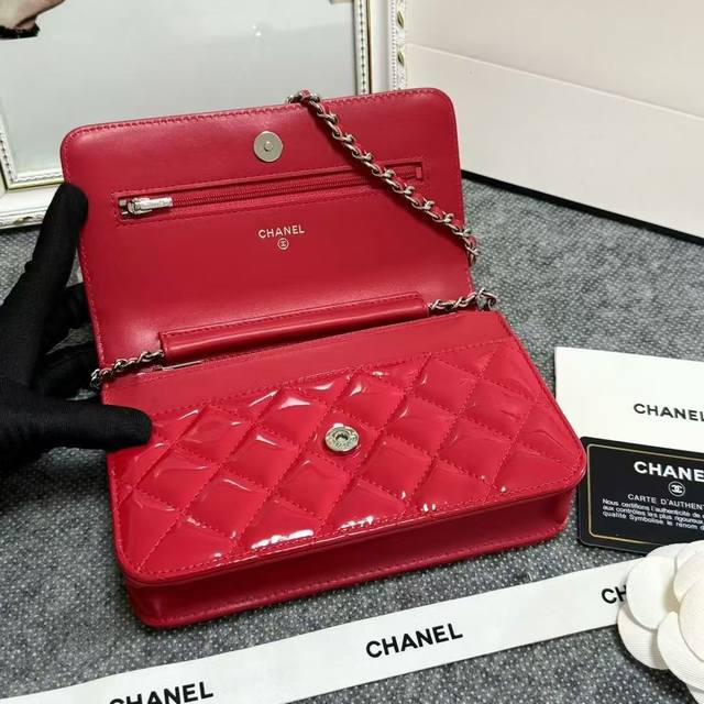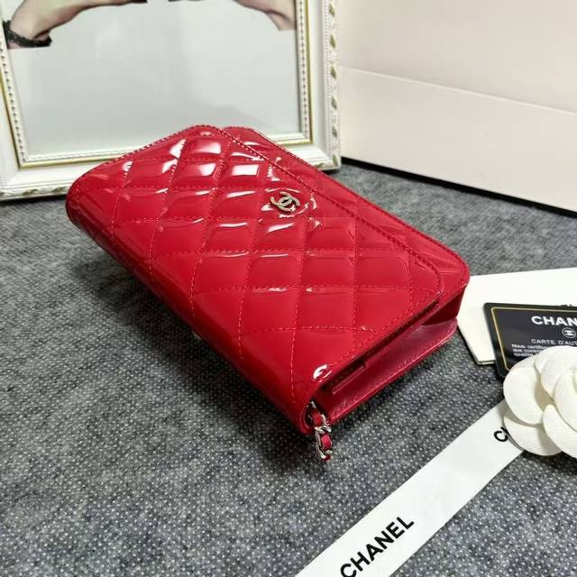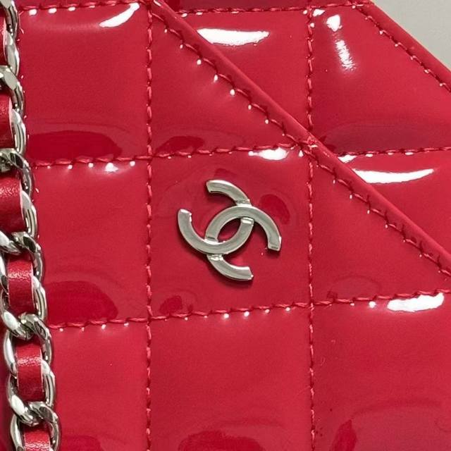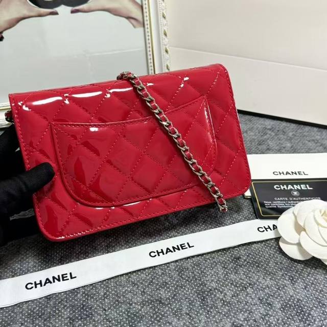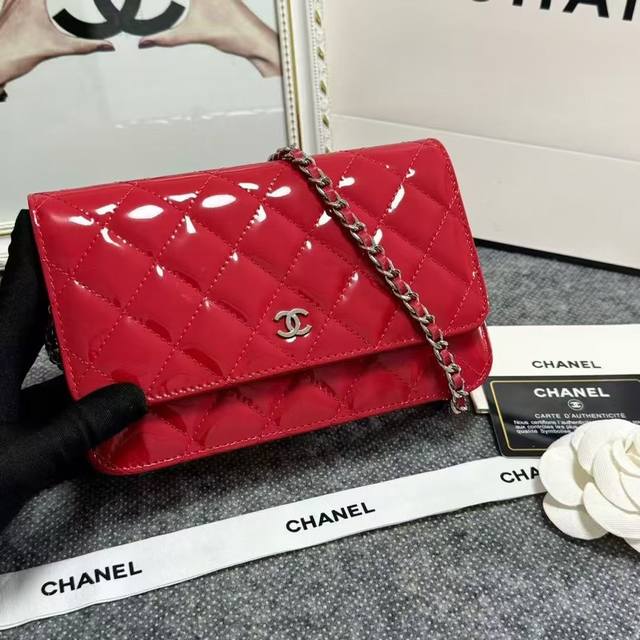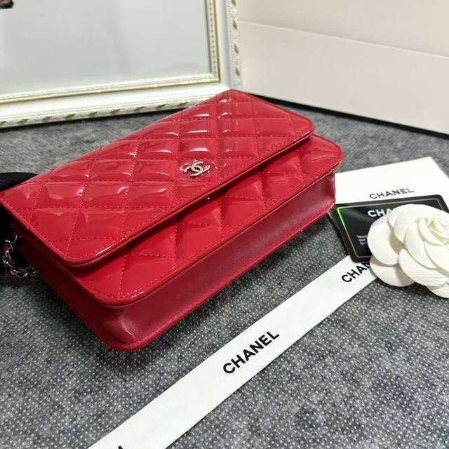 Chanel Original Patent Leather Small Crossbody Bag with Silver Buckle, Imported Patent Leather, Model: 33814, Size: 19C, Clearance Price.