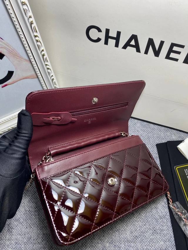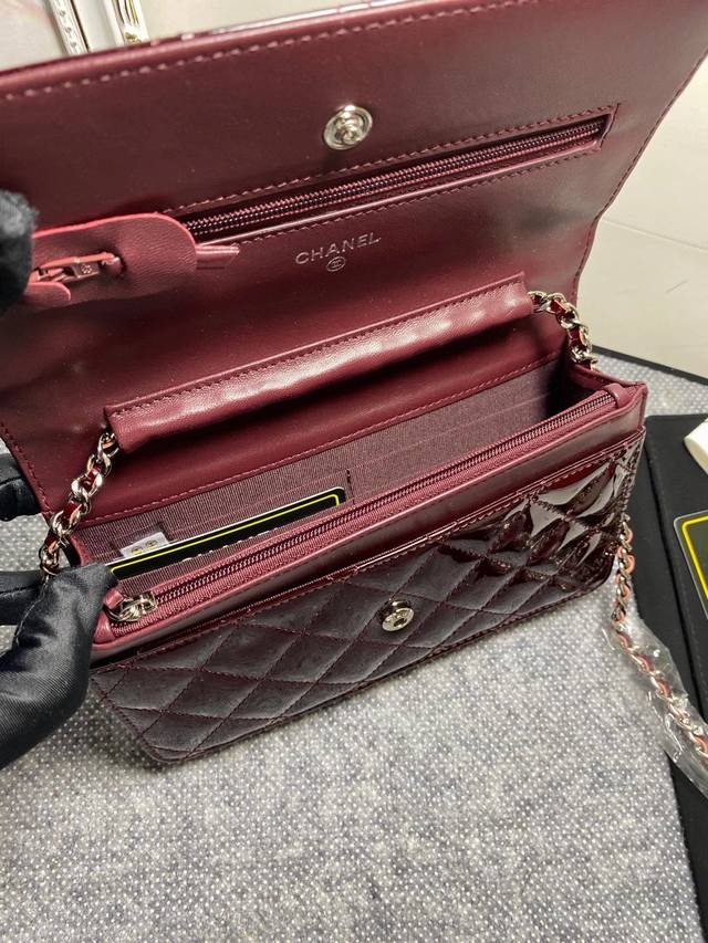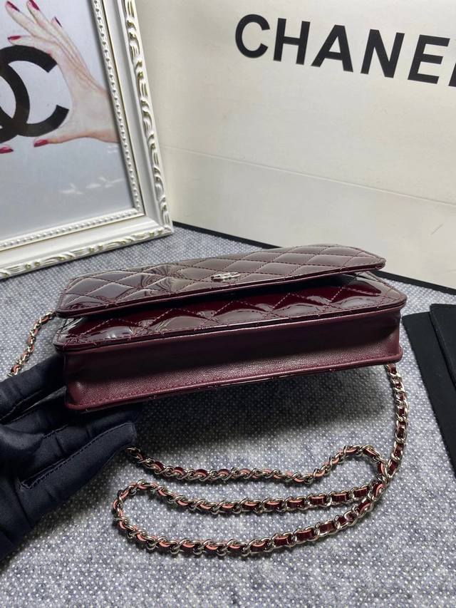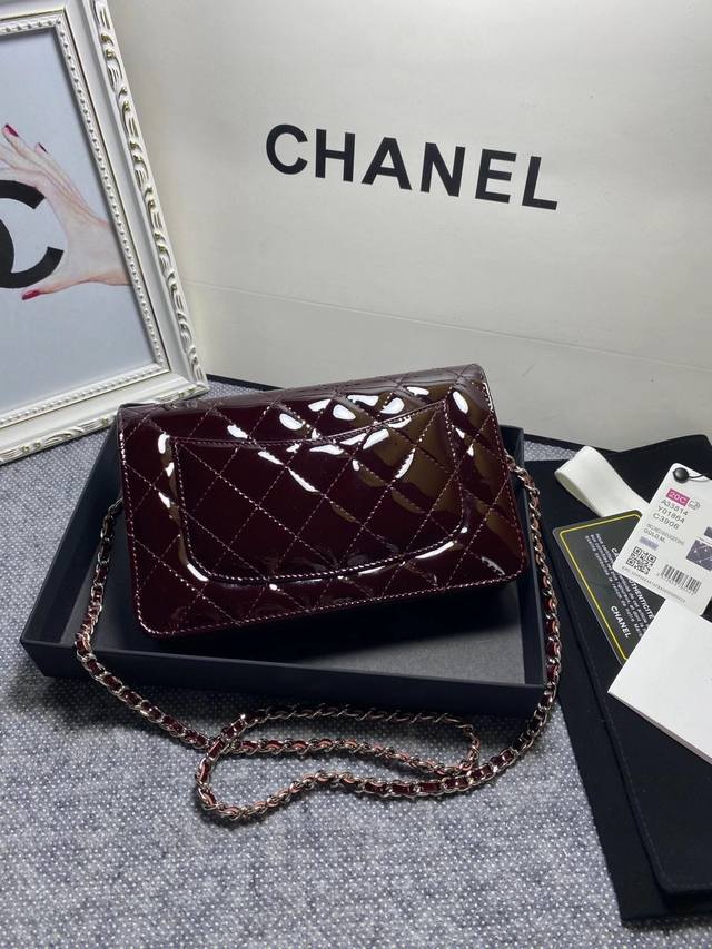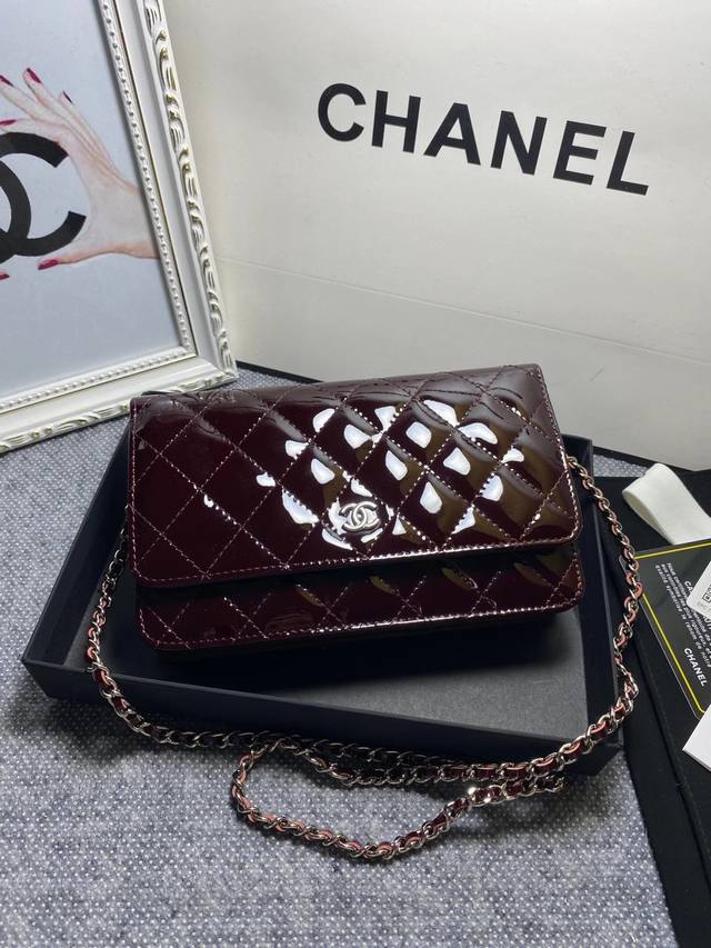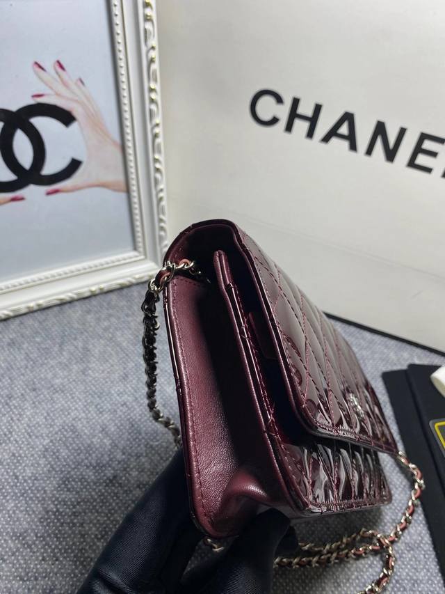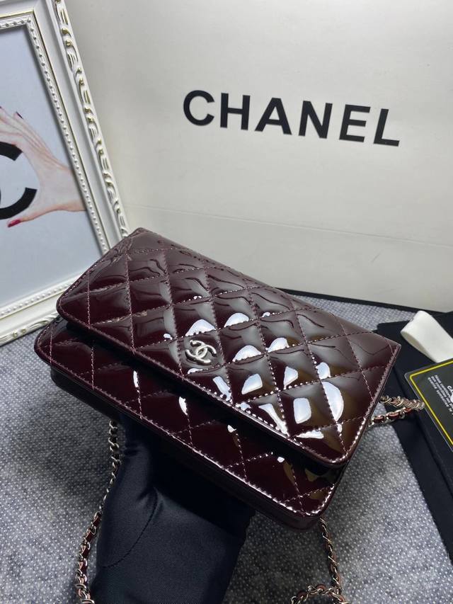 Chanel Original Patent Leather Small Crossbody Bag with Silver Buckle, Imported Patent Leather, Model: 33814, Size: 19cm, Clearance Price DDD