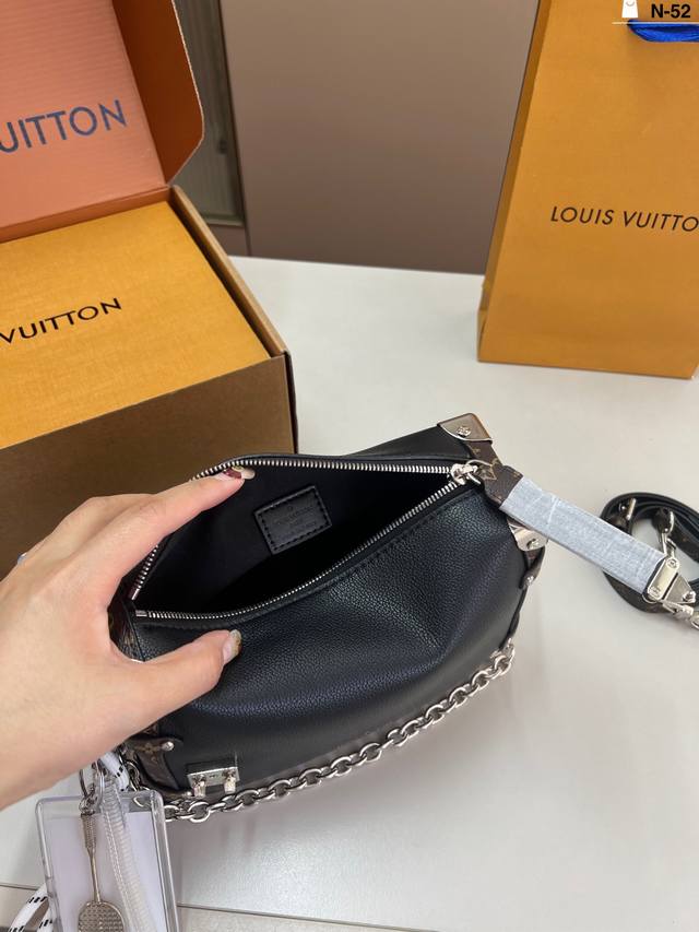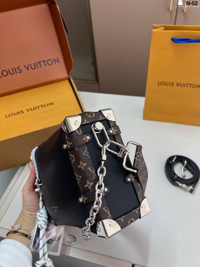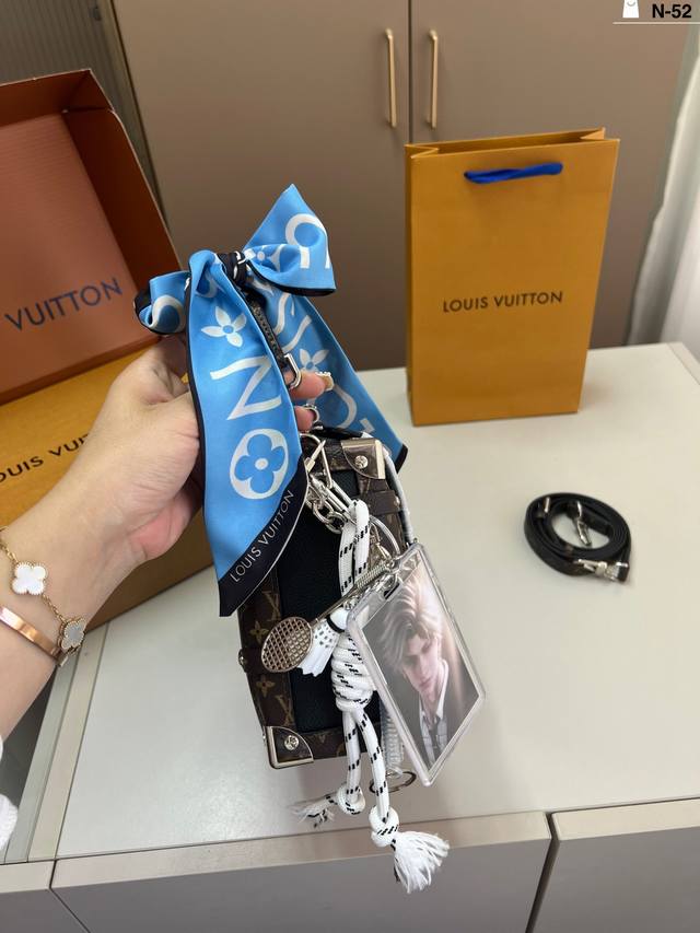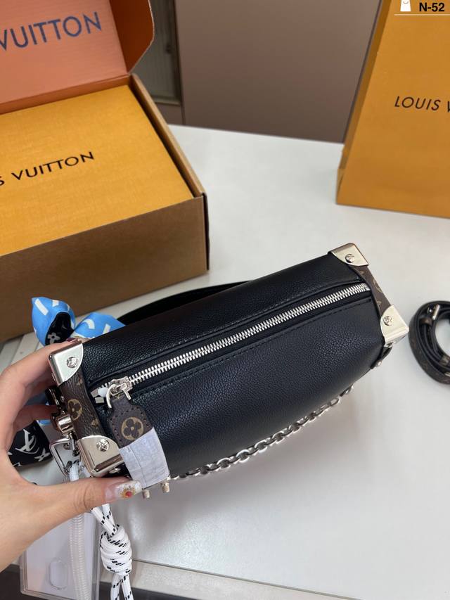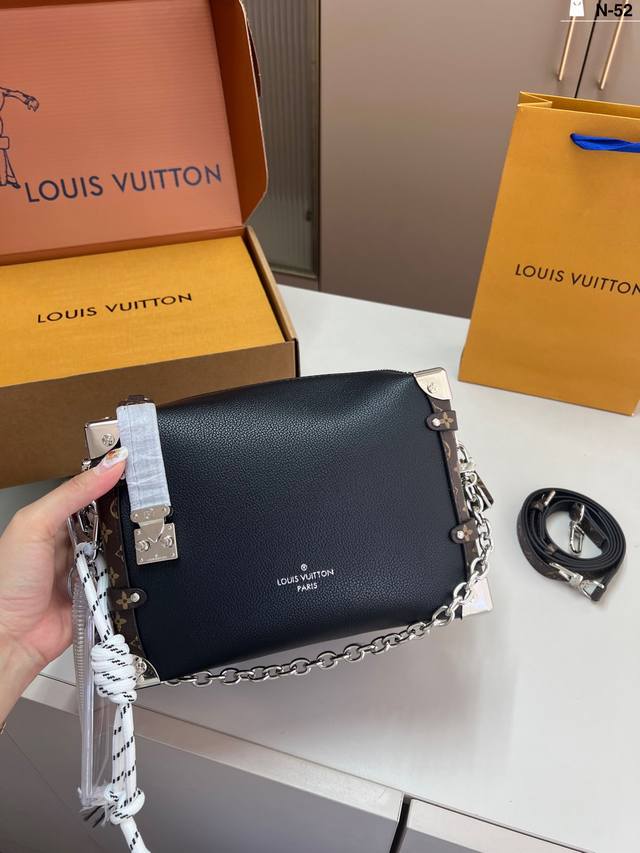 Chip version with keychain and scarf. Ddd Lv Side Trunk New Black Warrior Gu Ailing Box Bag! It's a soft little box with many exquisite details inside. It's large-capacity, practical, and stylish. N-52 Size 23