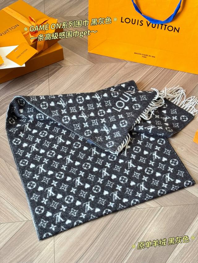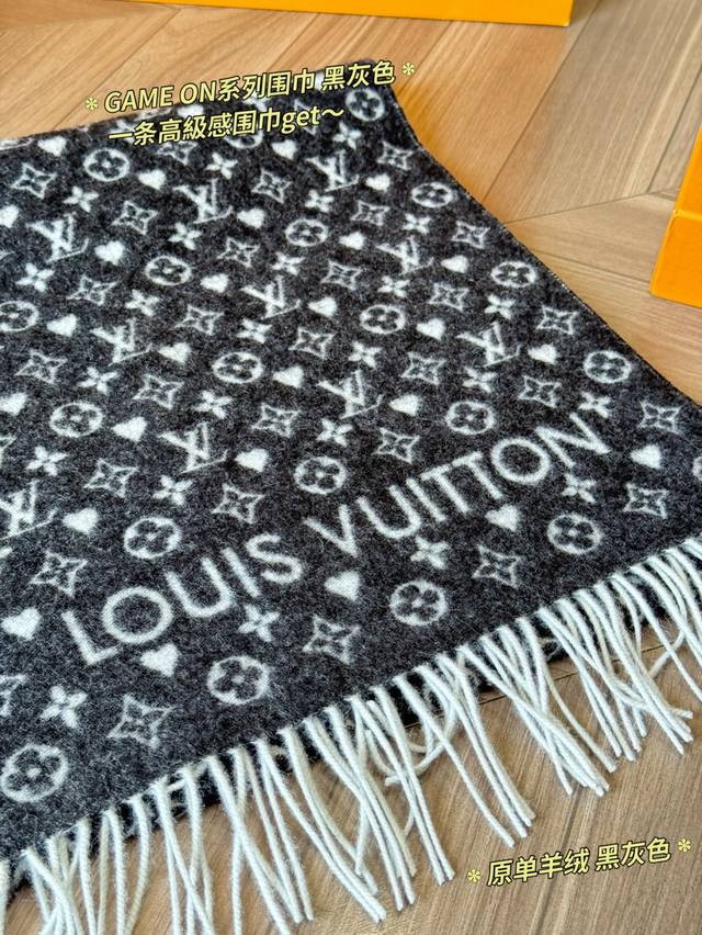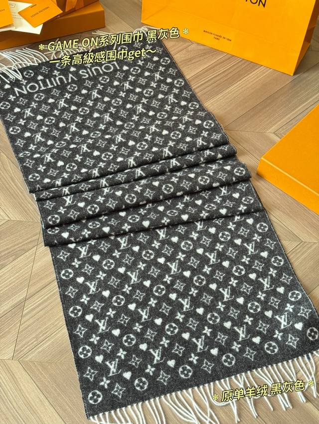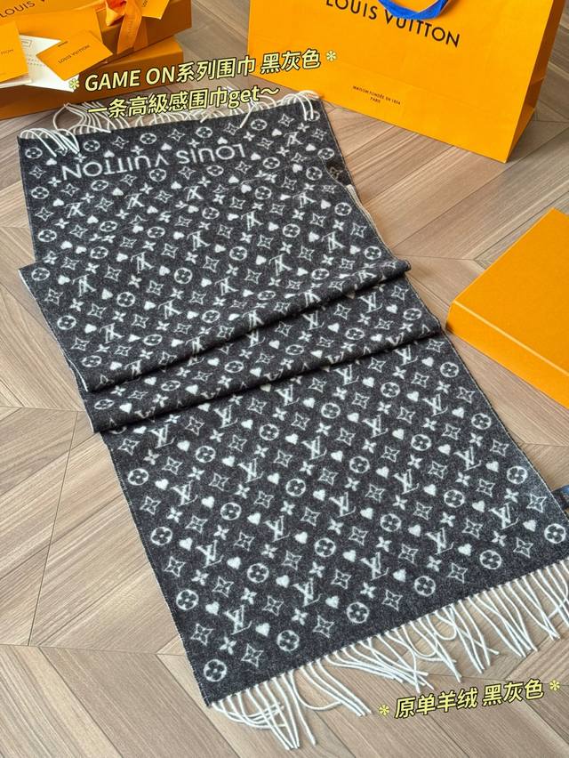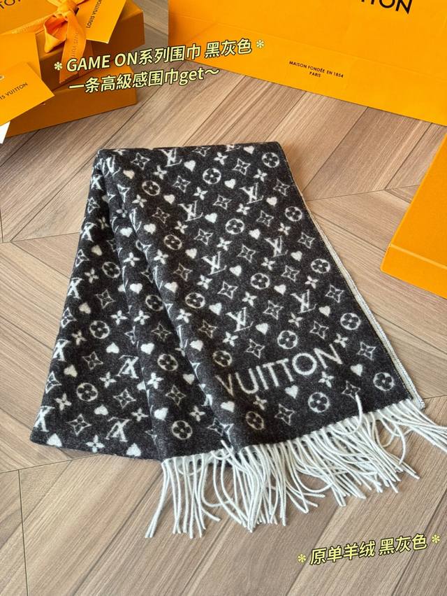 Classic Original Cashmere Scarf by Ddd LV. This heart-themed cashmere scarf features the classic Monogram pattern with heart elements, and the black and white color scheme is highly recognizable! Made of high-quality cashmere, it has a soft and supple feel, providing warmth and comfort for autumn and winter. Measuring 195x45cm, the length is just right, making it versatile enough to be worn as a scarf or shawl. The tassel trim adds a touch of detail. Whether paired with a coat or trench coat, it effortlessly elevates the look, making it a must-have fashion item for autumn and winter! DDD