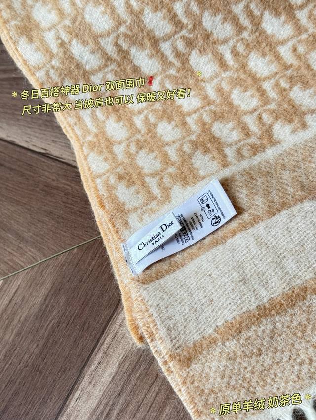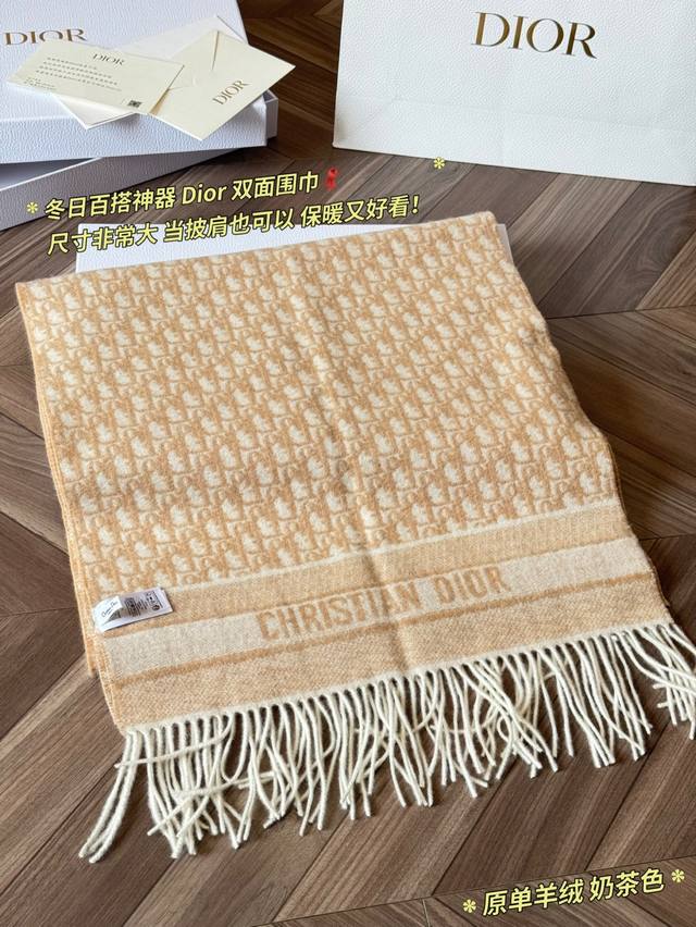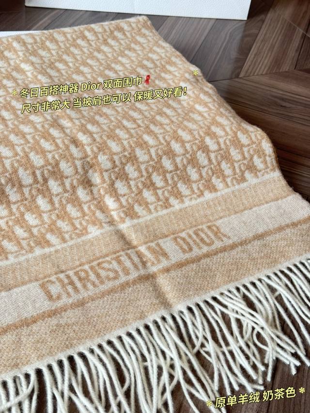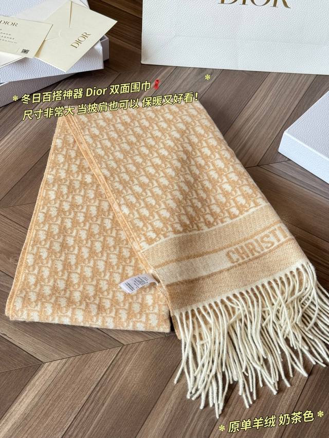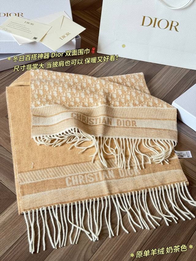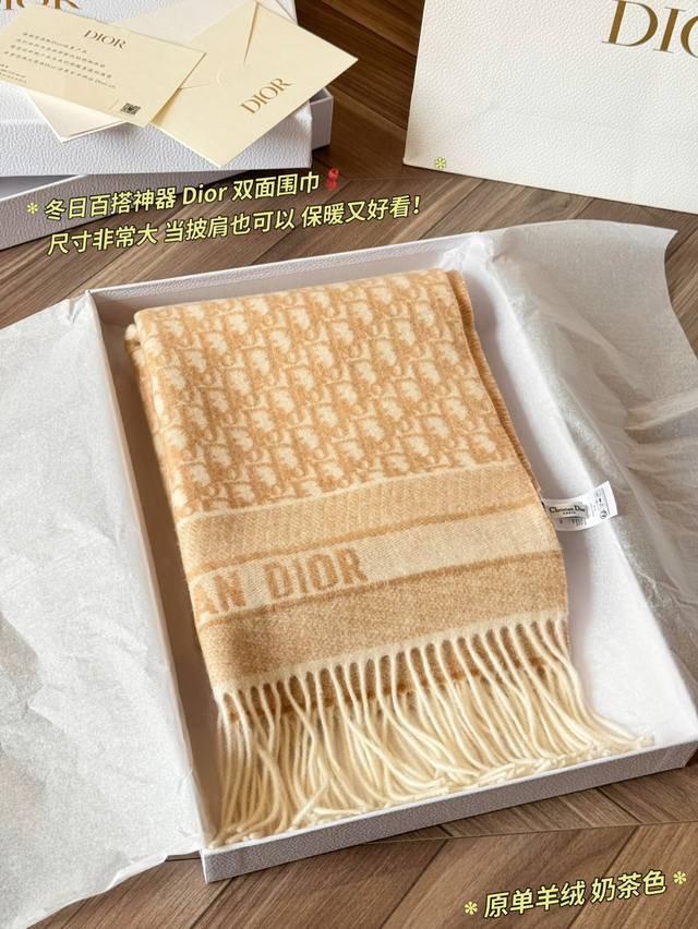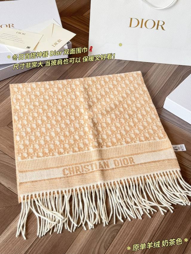 Classic Original Cashmere Scarf by Ddd. Made with high-quality cashmere, this Dior Oblique cashmere scarf is soft and warm, a must-have for autumn and winter! It features a double-sided design: one side boasts the classic Oblique print, while the other is a solid color, offering exceptional versatility*. Long tassels and "Christiandior" jacquard details showcase impeccable craftsmanship. The beige and light brown color scheme is understated yet sophisticated, easily adaptable to both work and formal occasions