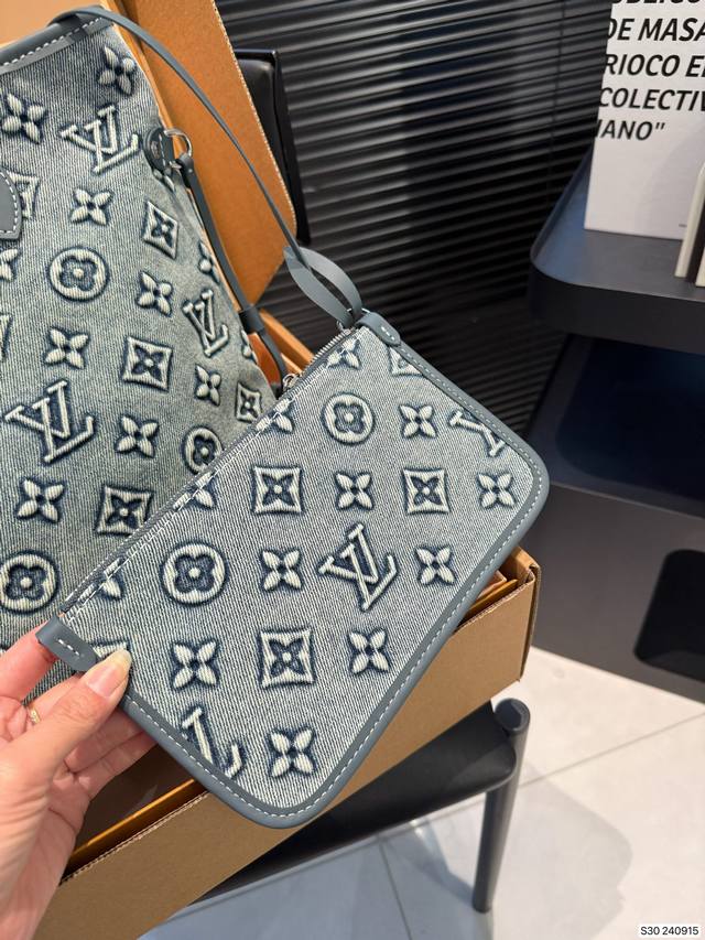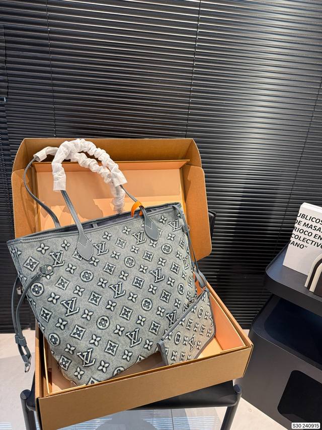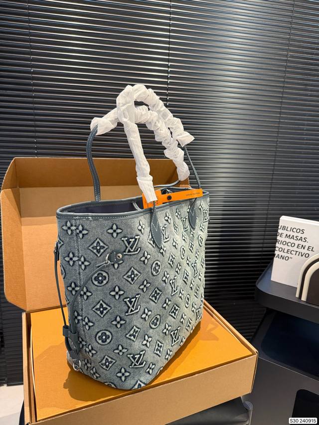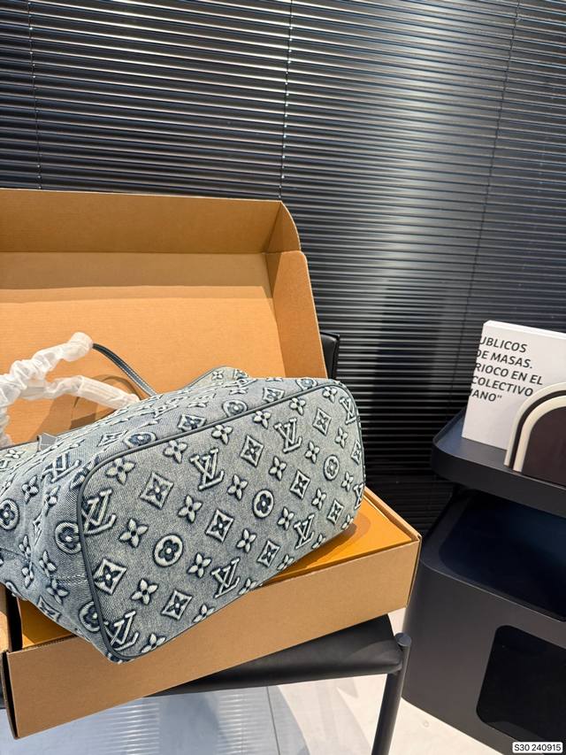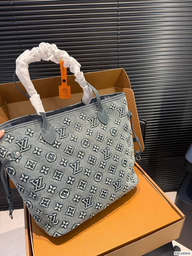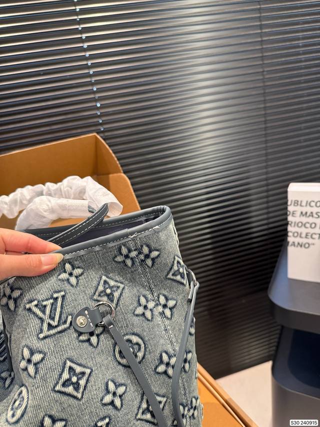 Comes with a folding box. LV Neverfull Denim Shopping Bag! An entry-level style! Absolutely a lifetime classic! Its classic status speaks for itself! A fantastic choice for street style and practicality! Size: 33 31 Item No. 240915 DDD Ddd