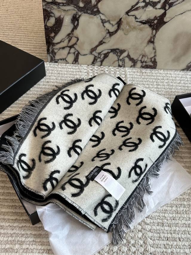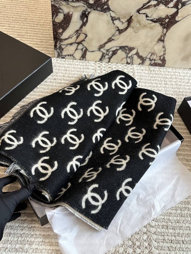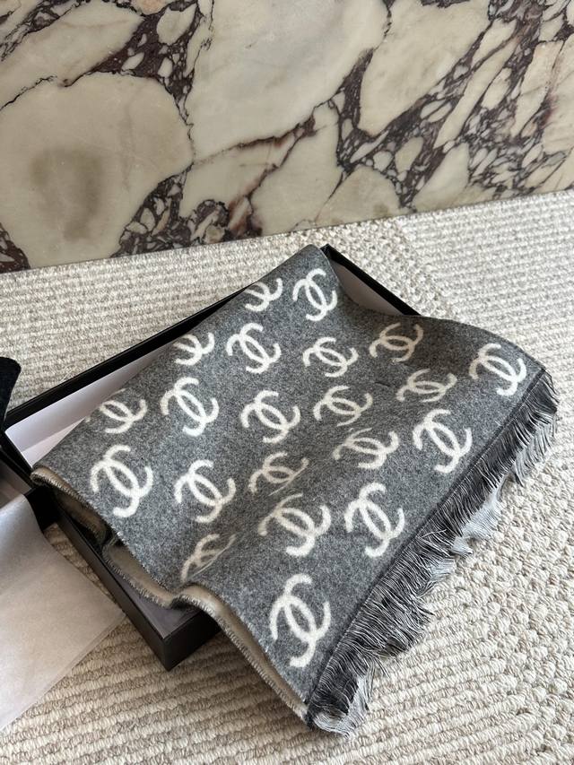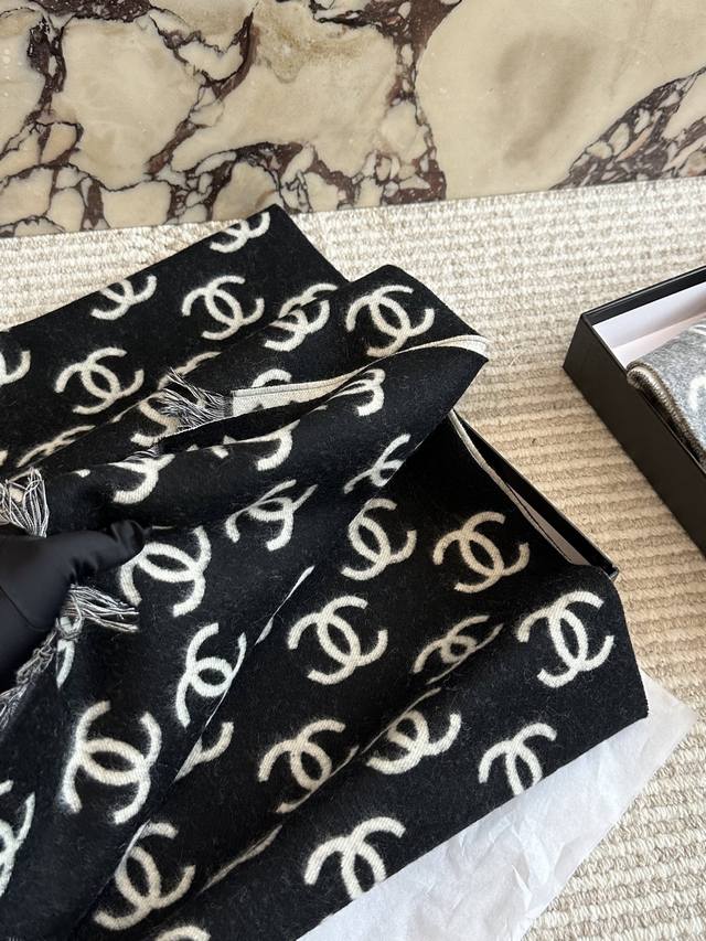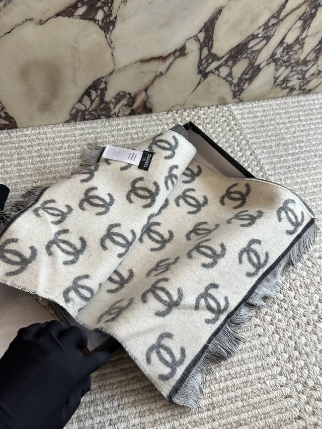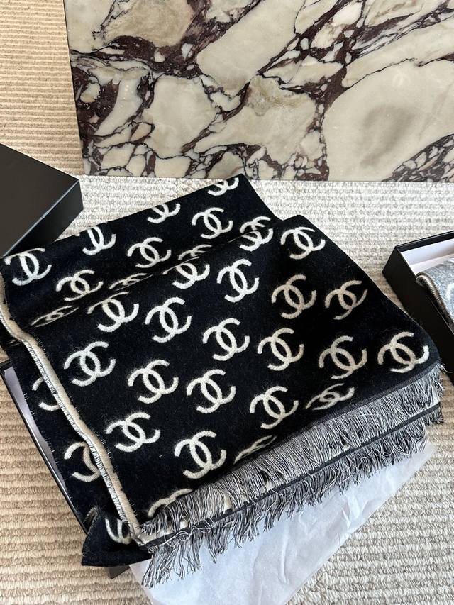 Comes with box DDD Size: *32cm Ddd Original cashmere scarf Ddd Chanel autumn/winter black/grey scarf Ddd Super soft to the touch Ddd This winter won't be cold! Ddd Excellent warmth Ddd Very stylish Yyds DDD DDD