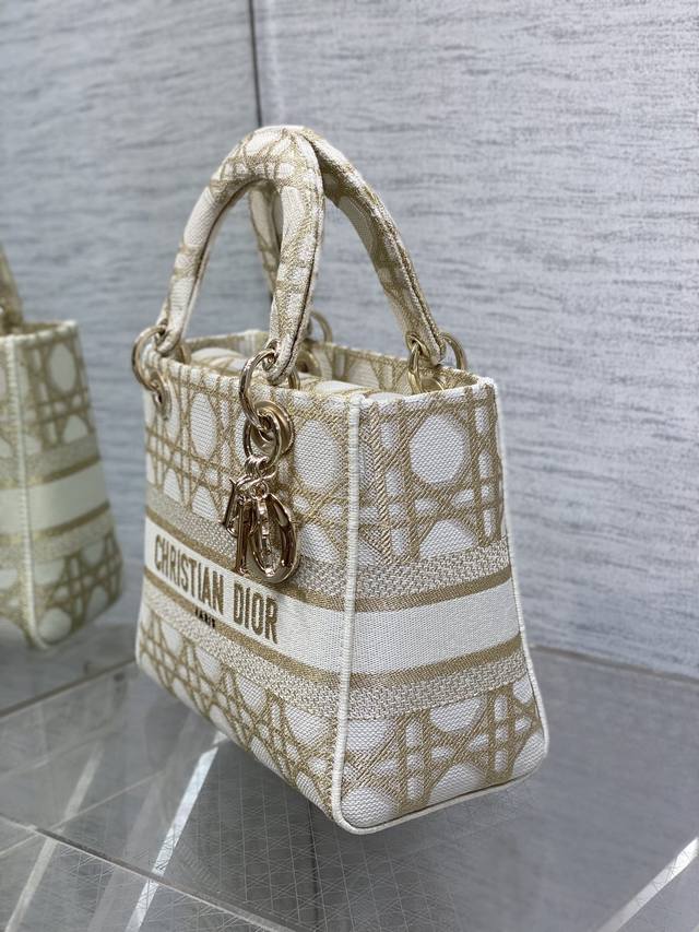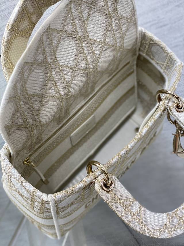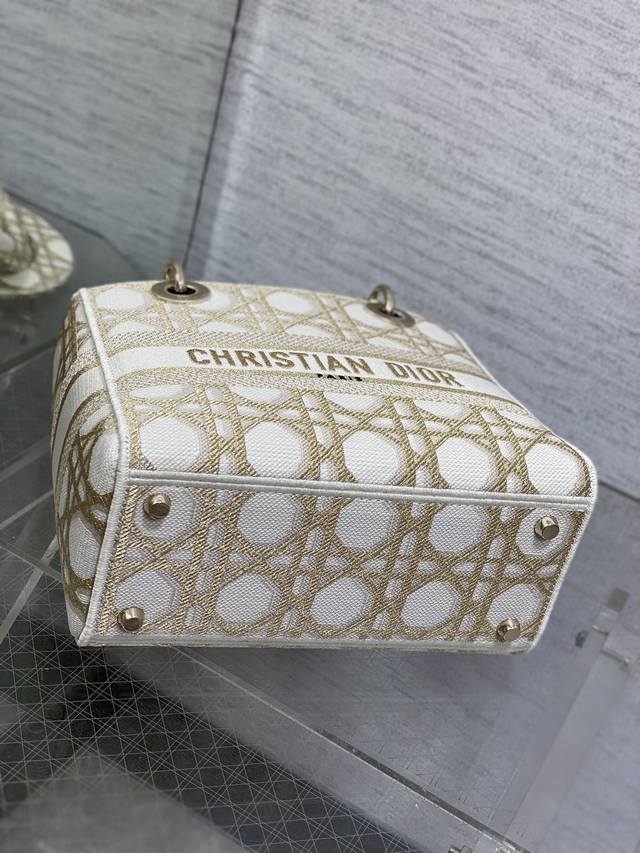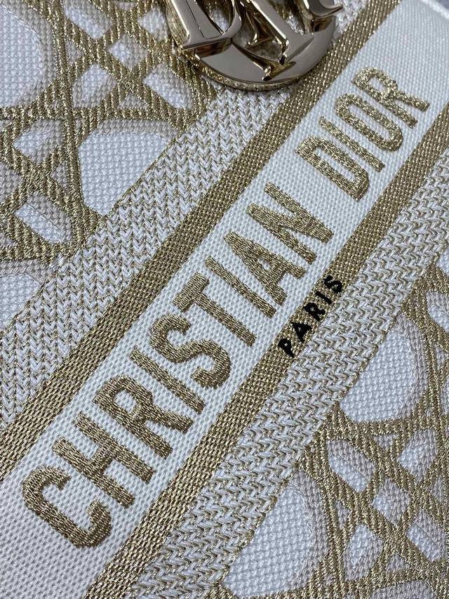 Dior Lady Dior 5-compartment bag in stock. Featuring embroidered spring/summer collection details, this bag boasts exquisite gold thread embroidery and a classic diamond quilted design, making it incredibly eye-catching. Its large capacity makes it a must-have for fashionistas, offering a super retro look. The generous capacity is perfect for storing various items. Size: 24*11*20cm. 6605