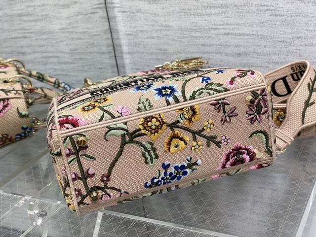 Dior Lady Dior Five-Panel Apricot Iris Flower Ddd Lady Embroidery Latest Autumn/Winter Collection, French romantic elements, unique floral embroidery, exquisite craftsmanship, perfect color matching, overall fashionable yet retro, high-end yet romantic Ddd Size: 24*11*20Cm Ddd 6605 DDD