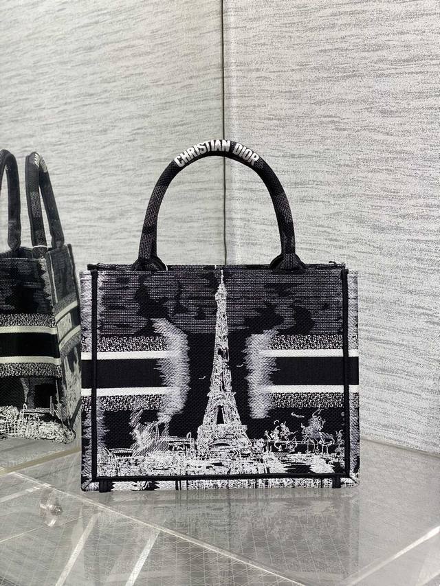 Double 12 Special Buy One Get One Free Black Paris Eiffel Tower Small Ddd Tote, the latest small size! I've been eyeing this bag. It's a little shorter than the original small size, making it very delicate. It retains the exquisite cuteness of a small bag while also having the large capacity of a large bag, perfectly meeting my daily travel needs. The classic embroidery and iconic lettering make it fashionable, versatile, and full of retro charm. Size: 26*8*22cm. 8002