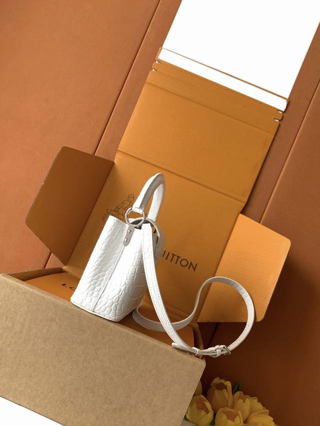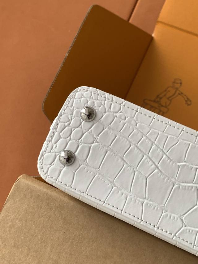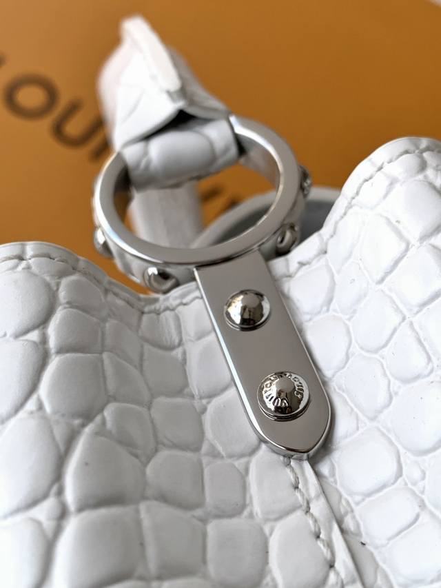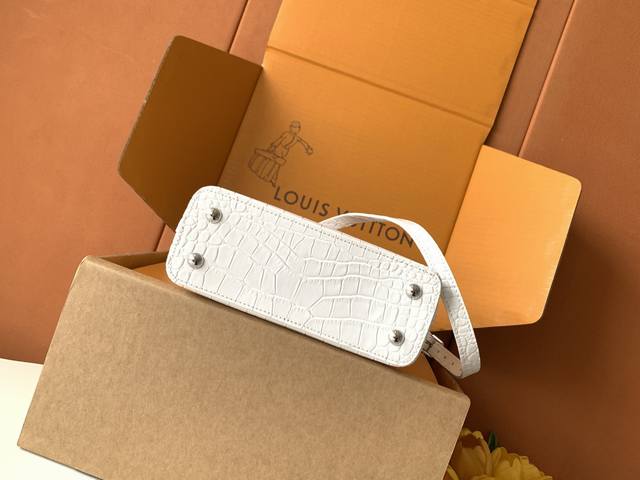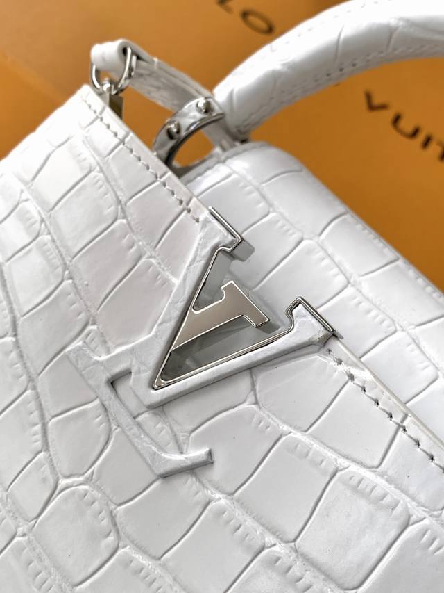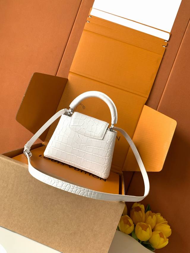Factory Price p Premium All-Steel Hardware Exclusive Custom Boutique Grade M93429 Imported White Glossy Crocodile Pattern Silver Buckle Ddd This Capucines mini handbag is crafted from crocodile pattern leather, exuding a luxurious feel. Ddd It is lined with high-quality lambskin leather and features dazzling metal hardware. The chic Capucines Ddd flap can be tucked inside the bag to display the Louis Vuitton brand logo, or opened outwards to reveal the Monogram floral pattern. The compact size makes this extraordinary handbag perfect for a glamorous evening appearance. DDD Detailed Features Ddd 21X14X8 cm Length X Height X Width DDD