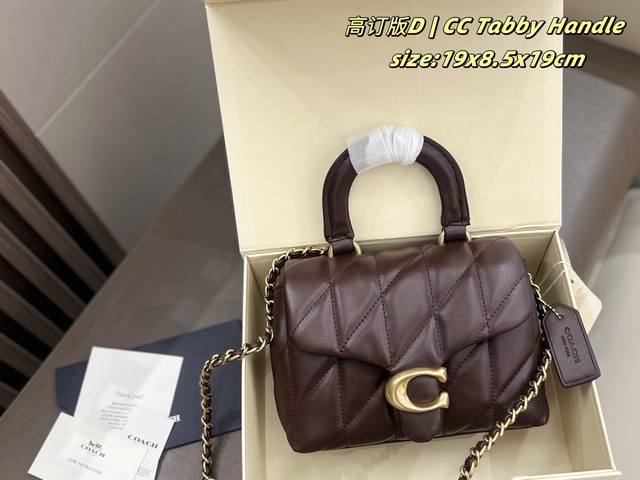 Folding Box Coach Tabby Handle Classic Tabby Bag Style Newly Upgraded Maple Brown Autumn/Winter Must-Have Suitcase Handle for Easy Carrying Comes with a Long Chain Shoulder Strap for Crossbody Wear Quilting for a More Refined Look Size: 19X8.5X19Cm