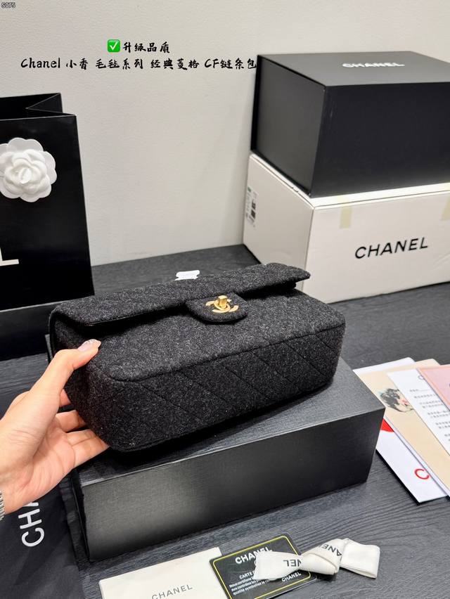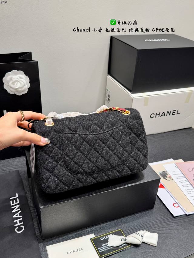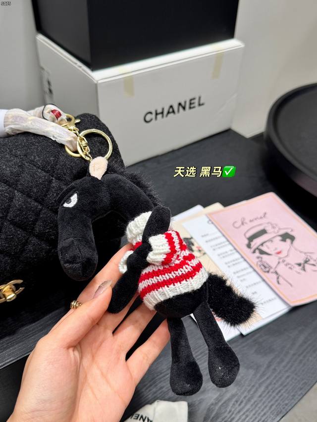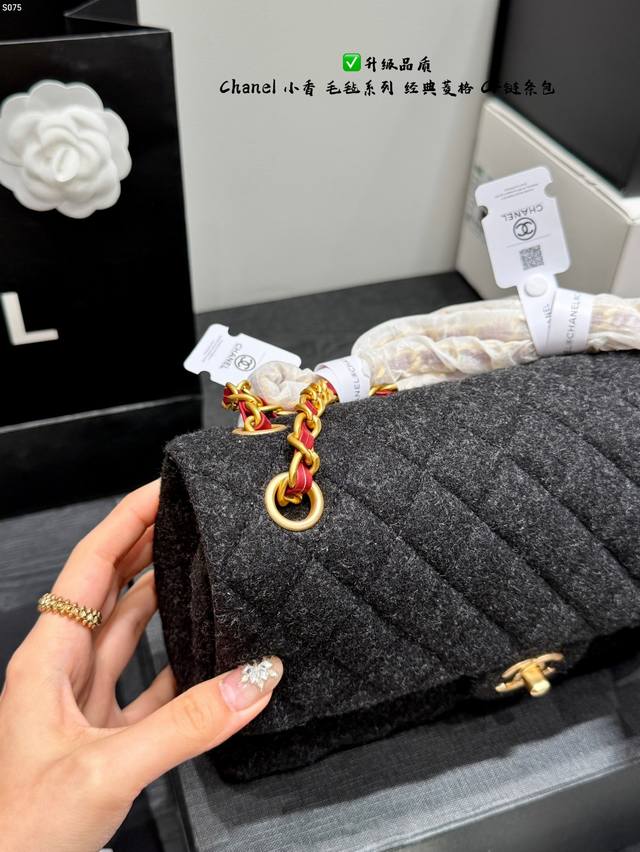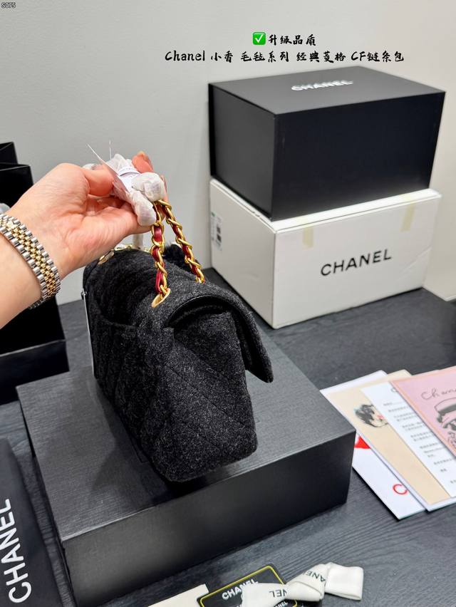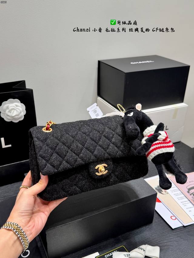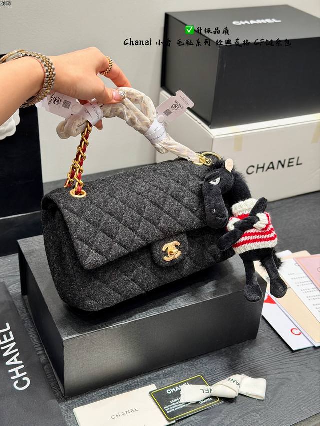 Folding Gift Box Black Horse Pendant 15 Ddd Upgraded Quality Ddd Chanel Felt Cf Chain Bag Ddd Wool quilted pattern + gold double C buckle, retro and elegant temperament full marks. Thick and durable black felt material, chain and leather interlacing design, can be worn as a shoulder bag or crossbody bag, super versatile for everyday outings Ddd Size 25*15Cm DDD