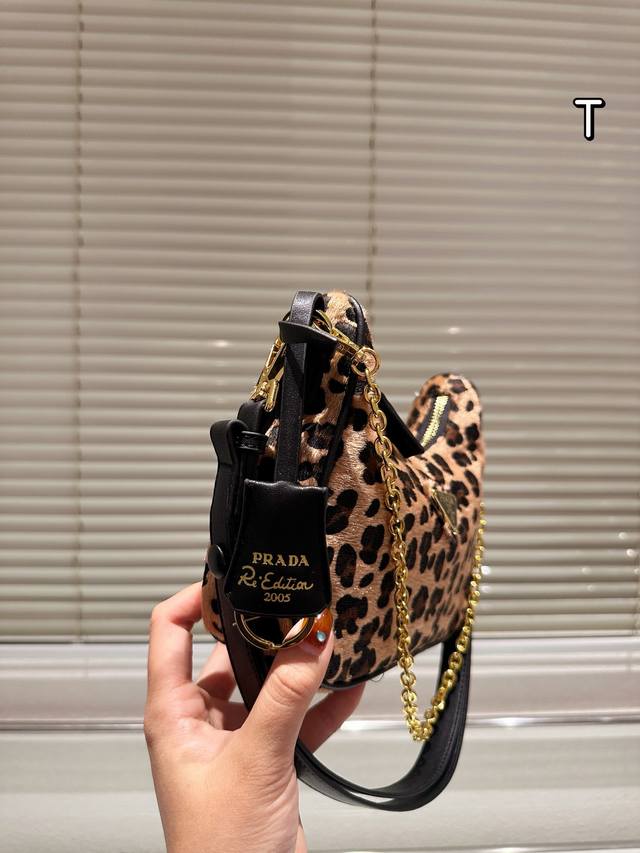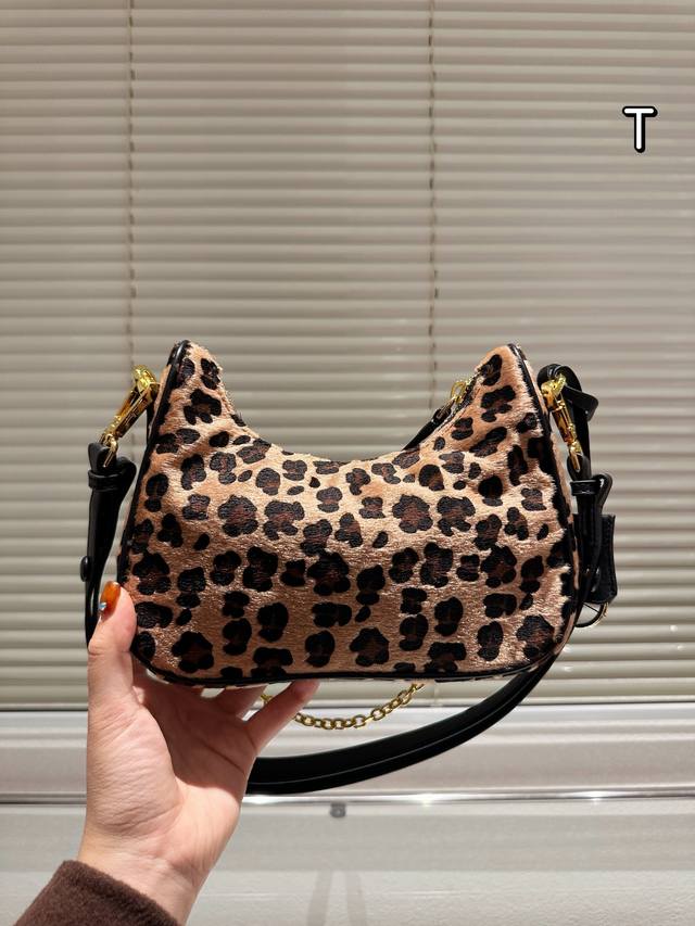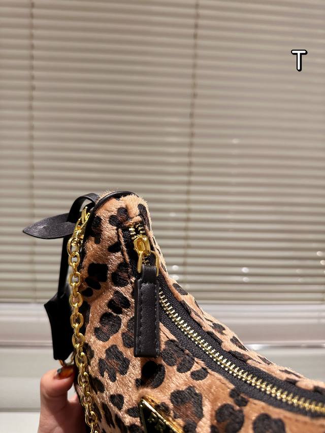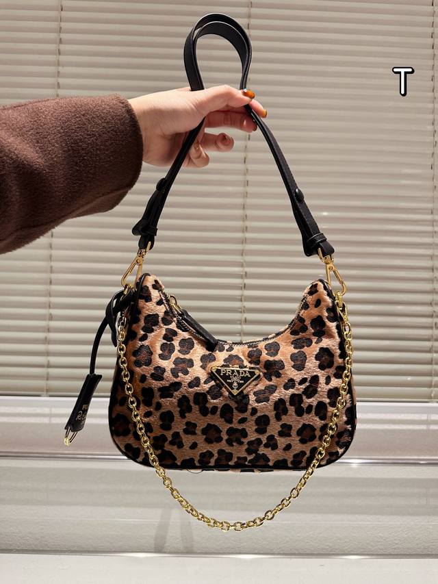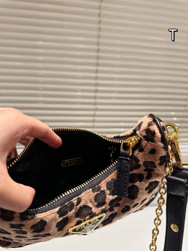 Heard everyone's been looking for Prada leopard print lately? Prada has just launched a leopard print pony hair series! The lining is lambskin, and the exterior is made of small calfskin with pony hair finishing. Every single one is absolutely gorgeous, ladies! Both the ultra-lightweight, large crescent bag and the Softlux bag come with a long crossbody strap. Dimensions: 22 x 13 cm.