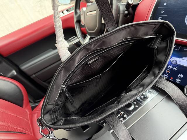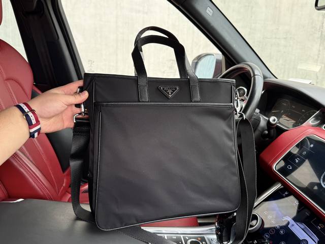 High-end latest "Prada" briefcase, Prada tote bag, letter logo, adjustable shoulder strap, Saffiano leather messenger bag, men's shoulder/crossbody bag, black nylon and Saffiano leather crossbody bag, nylon material, metal hardware and titanium zipper, Prada logo, fabric lining, two side clasps, front triangular enamel logo. This modern and stylish shoulder bag features a detachable pouch charm and a spacious interior compartment, highlighting its functionality. Smooth zipper, dedicated interior lining, high-definition hardware logo. Dimensions: 35X33X10Cm DDD