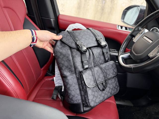 High-end new "Coach" backpack. Coach League 29 classic logo, large men's backpack in charcoal gray, made of faux leather, cowhide, and fabric. Features an interior laptop compartment, zippered hidden pocket, high-definition hardware, logo logo, and a dedicated lining. Smooth zippers, smooth edges, exquisite workmanship, and attention to every detail! A must-have for trendy men. Dimensions: 29 x 41.5 x 15 cm.