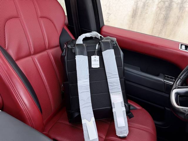 High-end new "Coach" backpack. Coach League 29 leather backpack for men, black, with drawstring and quick-lock closure. Features an interior laptop compartment, zippered inner pocket, high-definition hardware with logo, and a dedicated lining. Smooth zippers, smooth edges, and exquisite workmanship