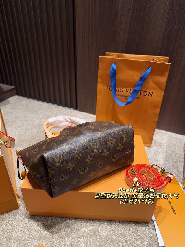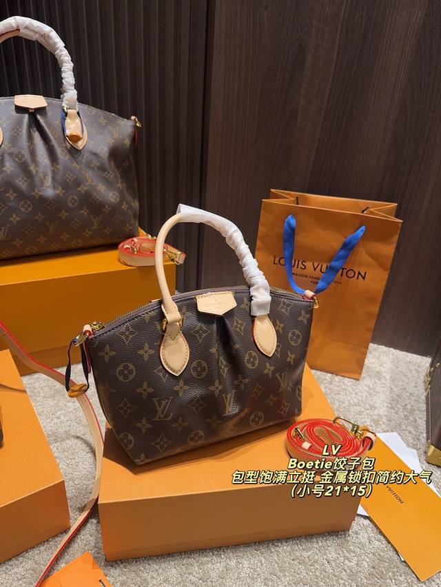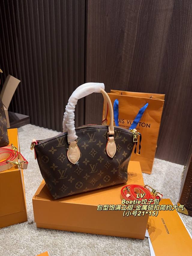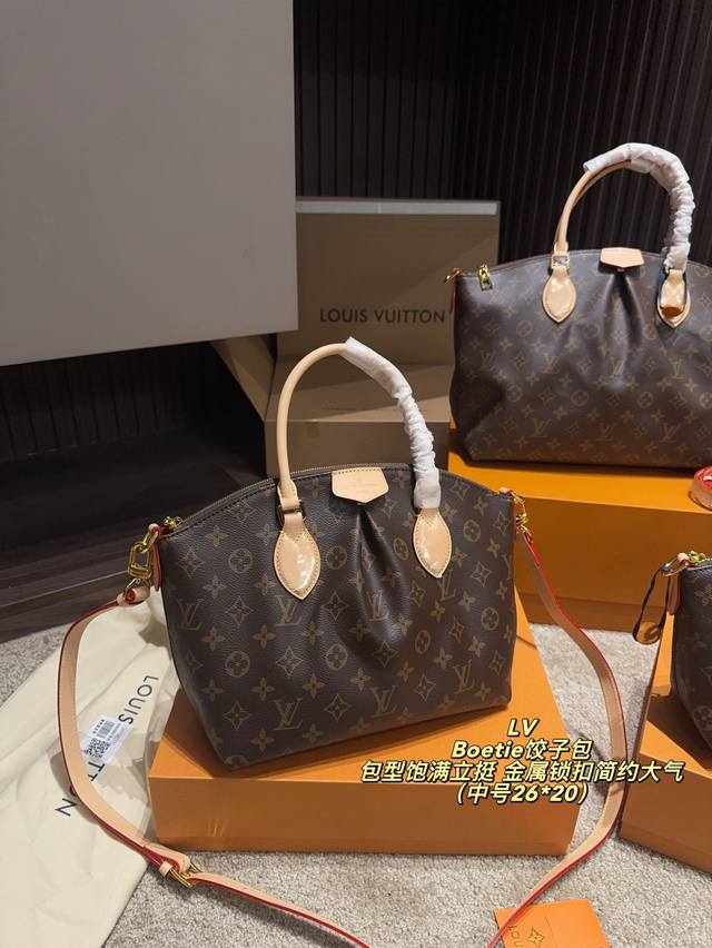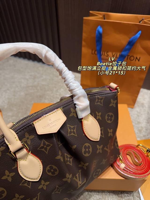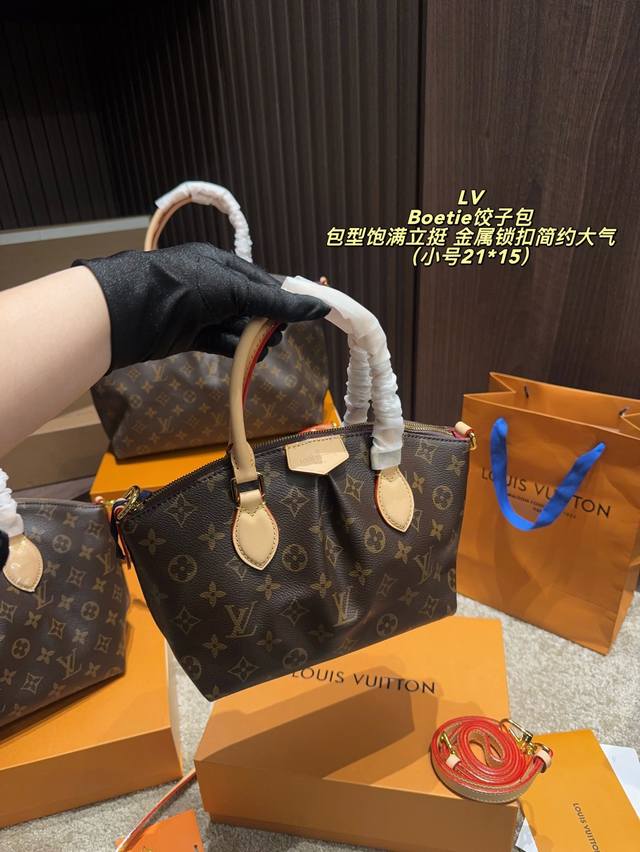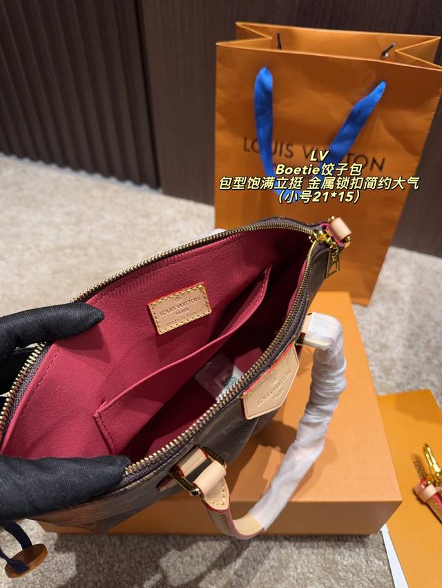 Large size p (full set packaging size 32*24 Ddd) Medium size p290 (full set packaging size 26*20 Ddd) Small size p270 (full set packaging size 21*15 Ddd) LV Boetie dumpling bag Ddd Classic Monogram canvas + coated canvas, with leather handles and an adjustable shoulder strap, can be carried by hand, over the shoulder, or crossbody! Extra spacious, practical for commuting and everyday use. The bag has a full, upright shape, and the metal clasp is simple and elegant DDD