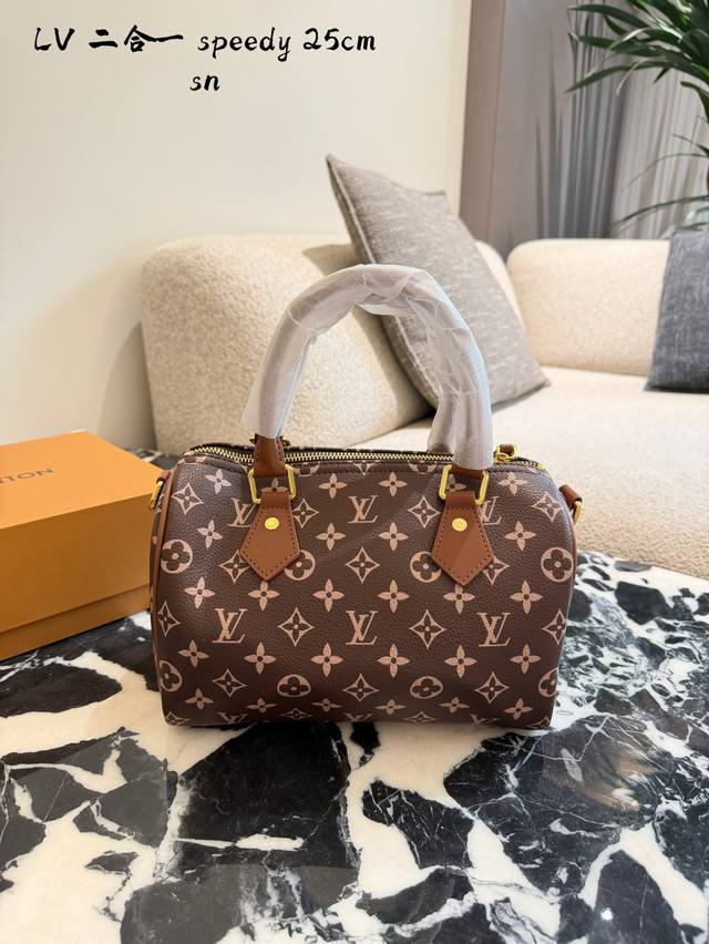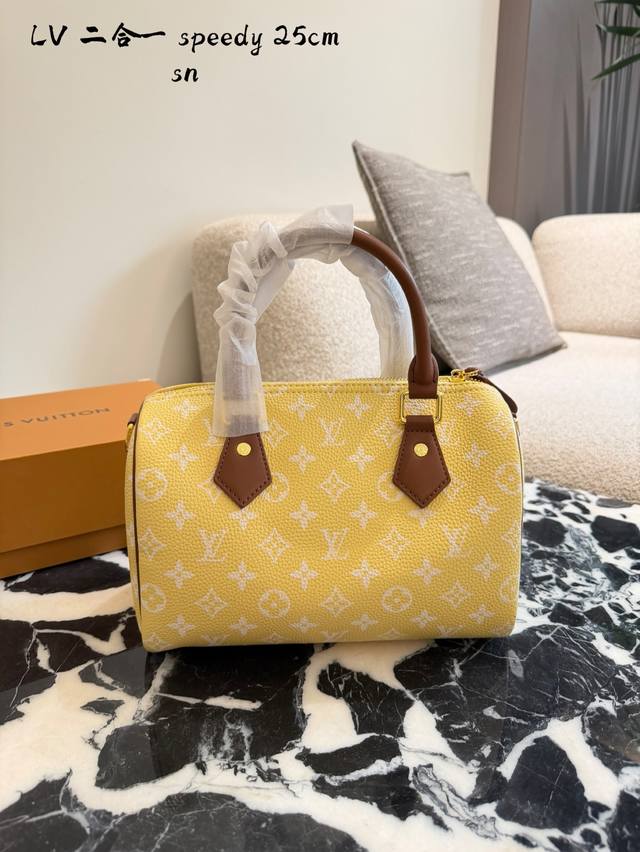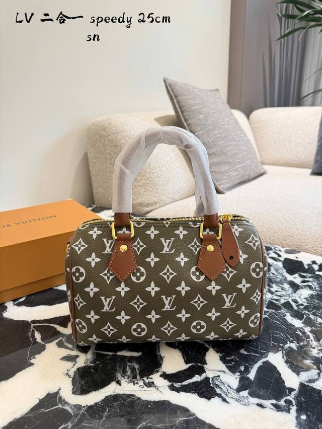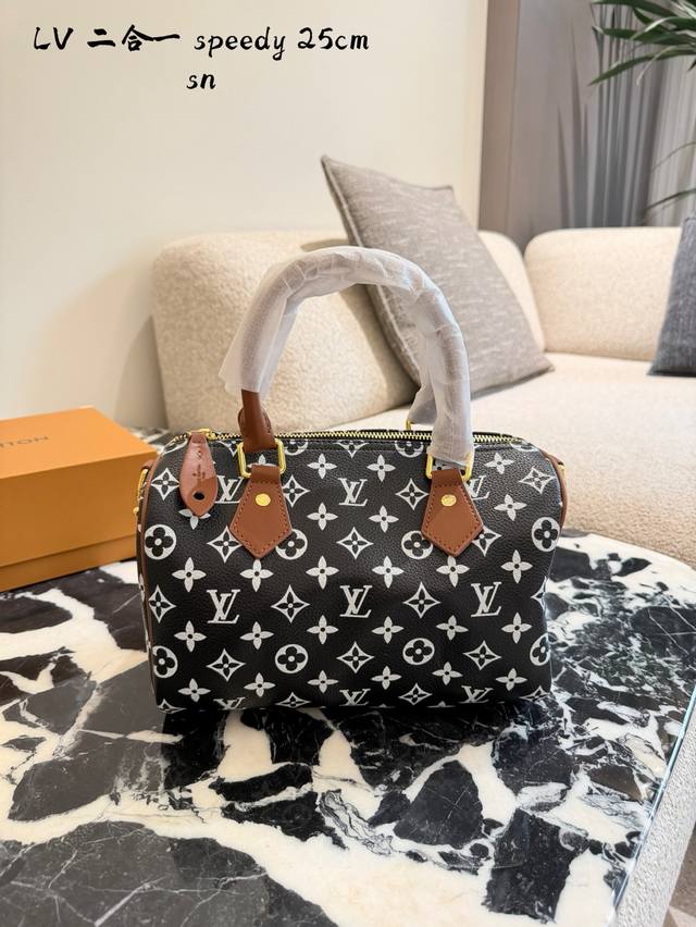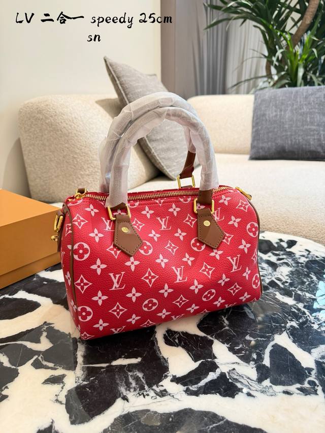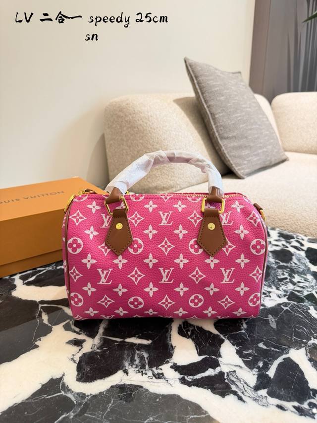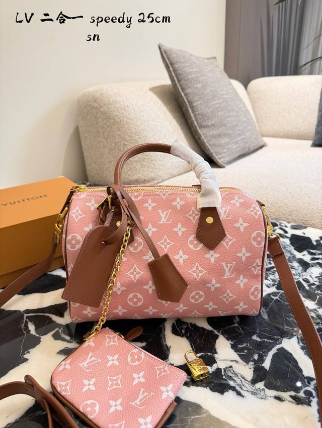 Lv Speedy p20 Handbag DDD The Lv Speedy p20 handbag is a limited edition from the L Ouitton x Nigo Fall/Winter 2025 collaboration. It features classic Monogram canvas in a cherry blossom pink color scheme, complemented by caramel leather handles and a chain, exuding a sweet and retro vibe. With a moderate 25cm capacity, it's perfect for commuting or short trips. Inspired by Lv's historical workwear elements, it blends modern streetwear style, making it both practical and collectible. It includes a detachable pouch for flexible storage and pairs exceptionally well with light and airy outfits DDD