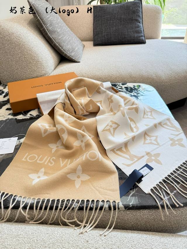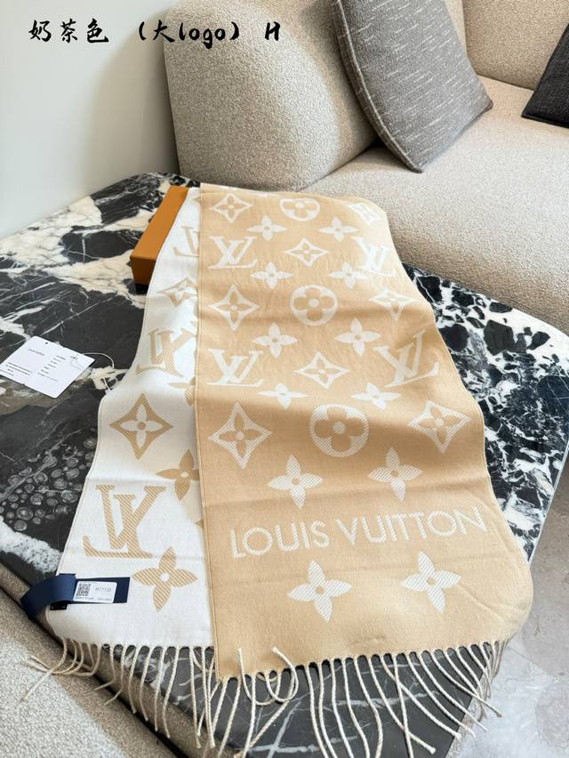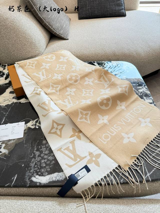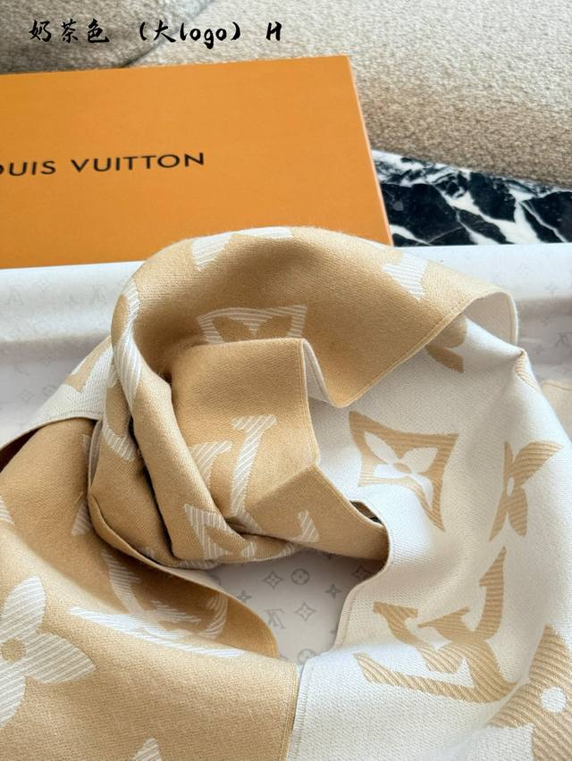 LV Wool Reversible Scarf in Milk Tea Color~ Ddd Milk tea color is currently the most popular color for LV scarves Thumbs up R] The wool version is also very comfortable and soft. Although it's slightly less luxurious than the cashmere version, it's great value for money! Secretly observing R]Secretly observing R] DDD