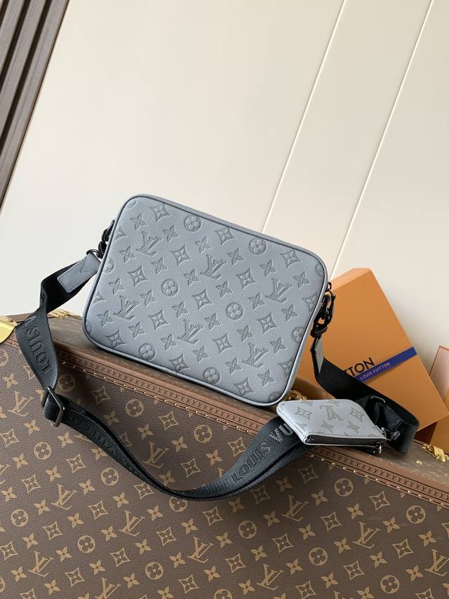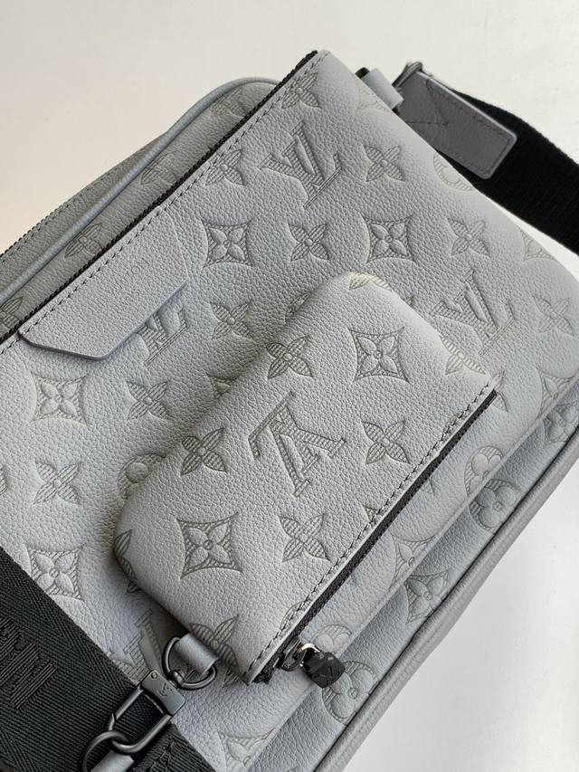 M27185 Grey Top-Tier Original Single Serial Number Chip 163C This Trio Messenger bag is crafted from supple Monogram Shadow calfskin leather, featuring a Monogram Shadow leather strap and main compartment. The zippered front pocket, shoulder strap, and attached coin purse are all detachable. The shoulder strap is also adjustable for a comfortable and snug fit. Dimensions: 25 x 18.5 x 7 cm (Length x Height x Width). Features: Monogram Shadow calfskin leather, calfskin leather trim, fabric lining, metal hardware, front slip pocket in the main compartment, interior slip pocket, detachable small coin purse on the shoulder strap, detachable and adjustable shoulder strap, strap half-length: 40.0 cm, adjustable half-length to: 64.0 cm.