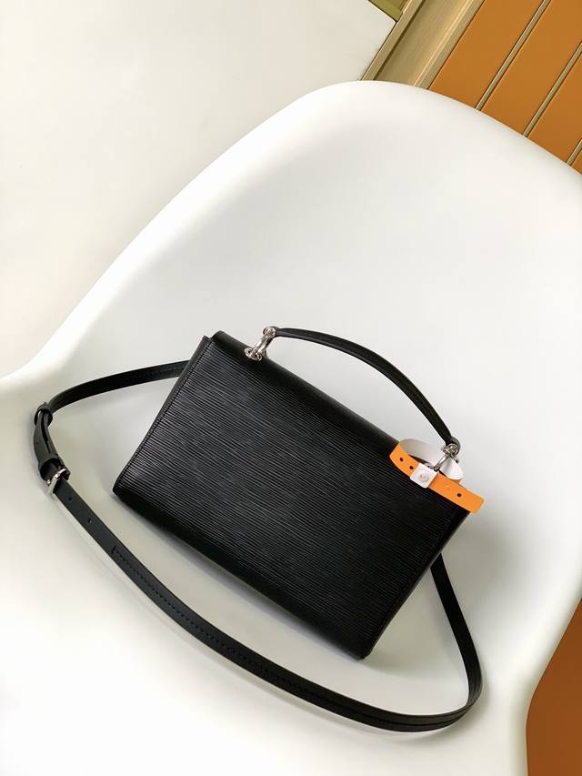 M55977 Black M55978 White M55981 Blue Top-tier original Pochette Grenelle handbag. Made of Epi grain leather with oversized lettering, this bag blends minimalism with a striking style. The contrasting lining accentuates the deep-dye effect, and the top handle and adjustable leather shoulder strap allow for hand-carry, shoulder-carry, or crossbody options. Dimensions: 23.5 x 16.0 x 8.0 cm. (090217480 DDD)