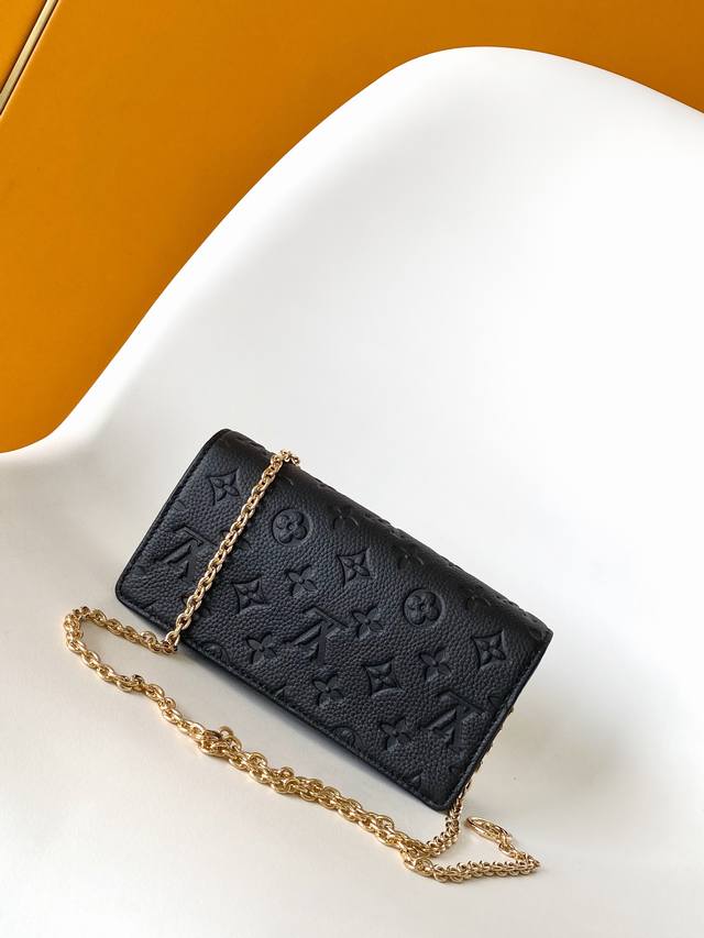 M83233 Blue M46919 Black Top-grade original single-layer cowhide dynamic code Wallet On Chain Metis is made of grained Monogram Empreinte leather, embossed with the brand's Monogram pattern. Its distinctive trapezoidal design features a front flap secured with an S-Lock, and a full leather embossed chain flap. This WOC crossbody bag is a design inspired by classic Louis Vuitton trunks. The detachable chain allows for crossbody wear. Dimensions: 22.0 x 15.0 x 5.5 cm.