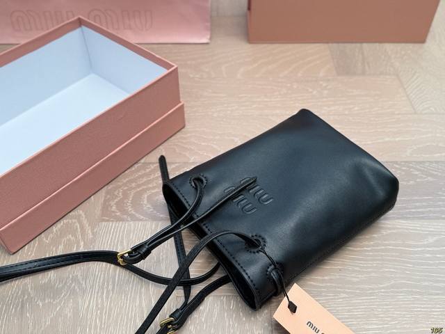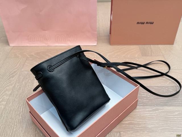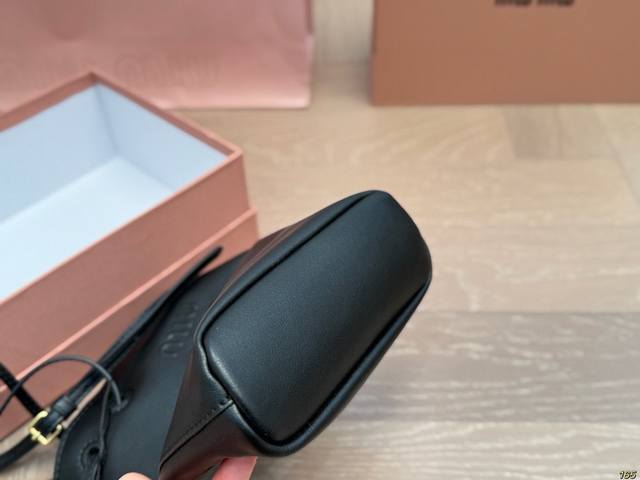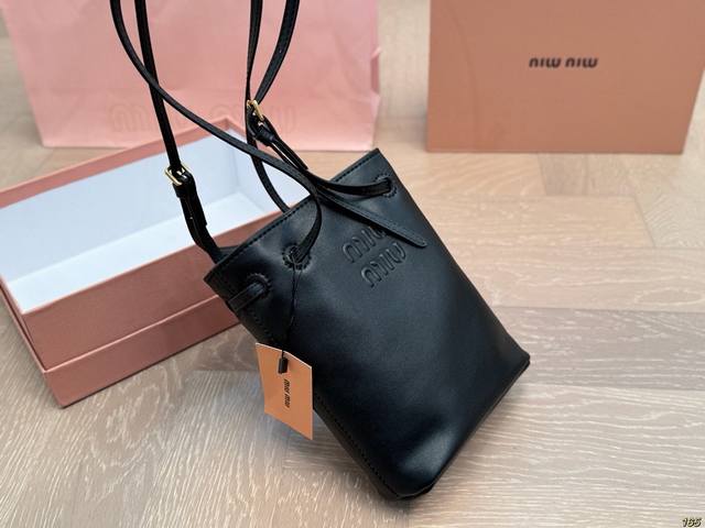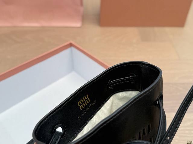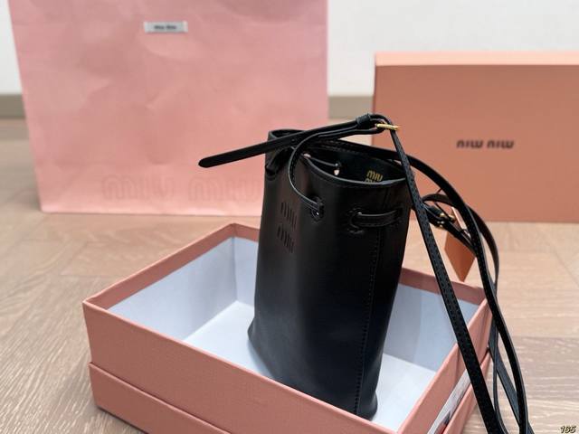 / Matte finish with box. Miu Miu bucket bag. Every gesture exudes sophistication