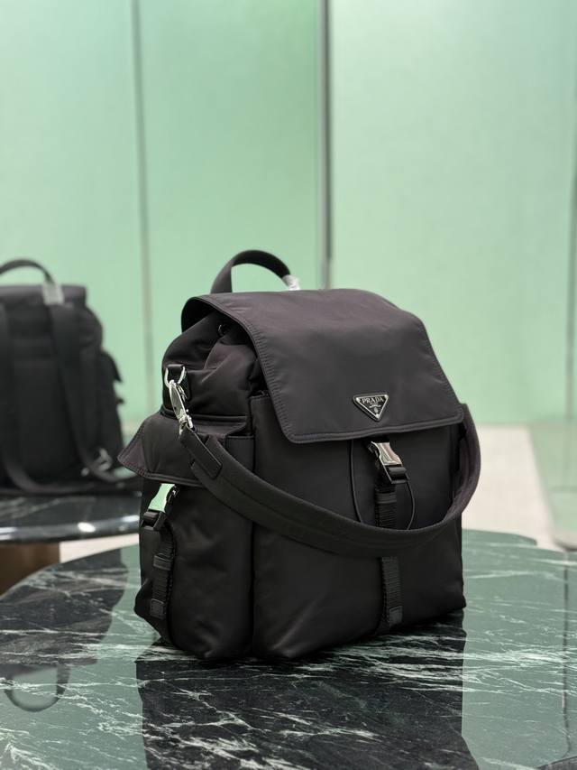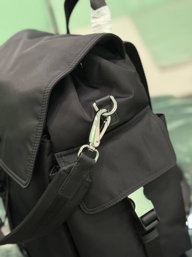 Men's Backpack Ddd This Explore bag perfectly blends elegance and functionality, featuring a multi-pocket silhouette with soft lines. Designed for urban exploration and outdoor adventures, it comes with a detachable handle for shoulder carrying. The combination of recycled nylon and leather reflects the duality of the design, blending technical details with sophistication. Features include a flap and side closure system, three exterior pockets with zippers and flap side closures, a back pocket with a magnetic closure, and interior zip pockets and patch pockets. Ddd Dimensions: Length 39 x Height 37 x Base 20 cm Ddd Style Number: 2Vz118 DDD