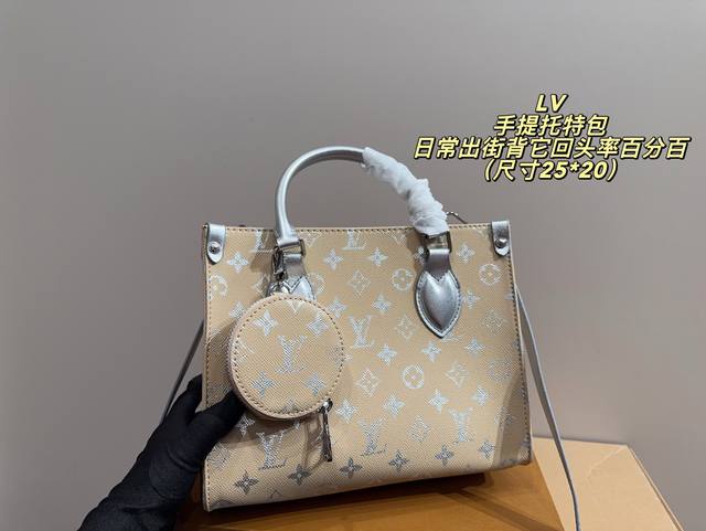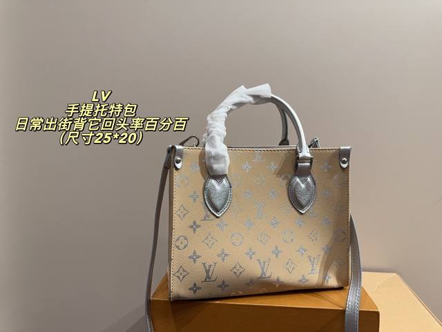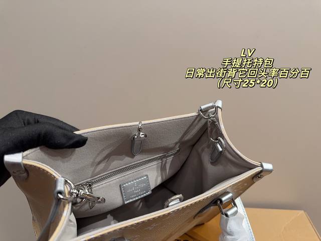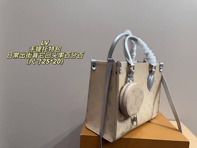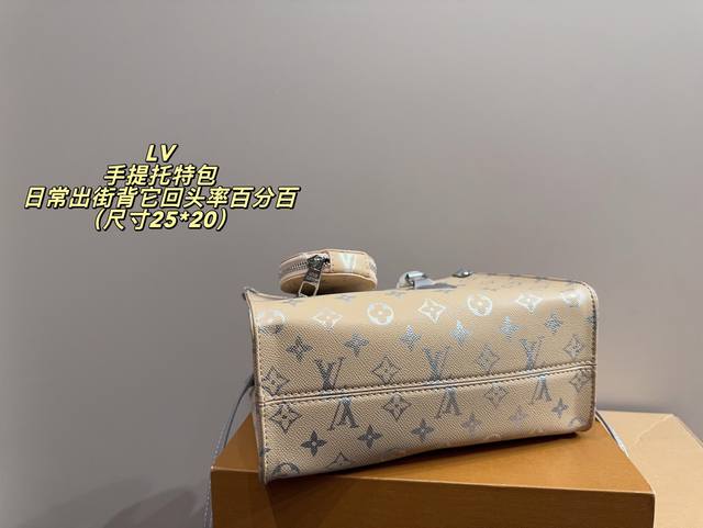 No box, size 25*20. LV handbag. High-quality feel, super large capacity and durable. 100% head-turning rate for everyday outings. It has that casual and relaxed vibe.