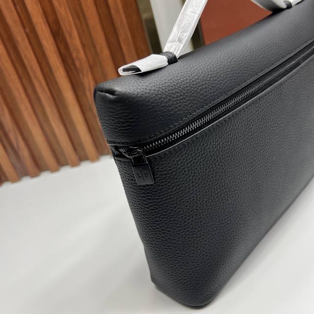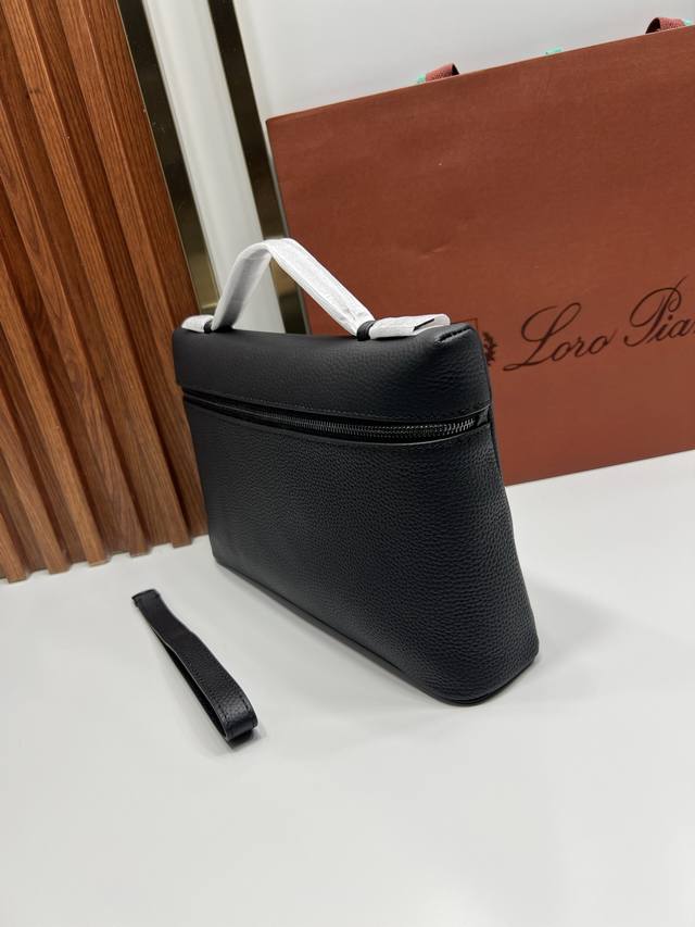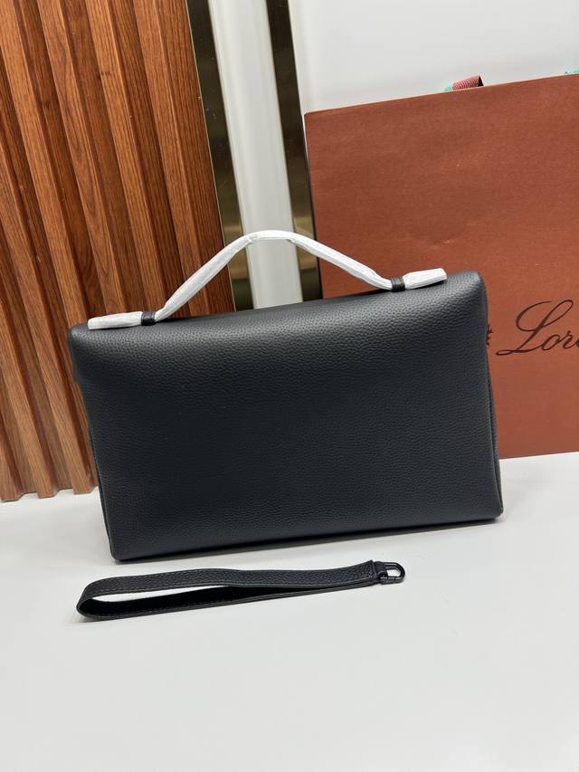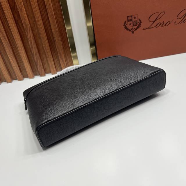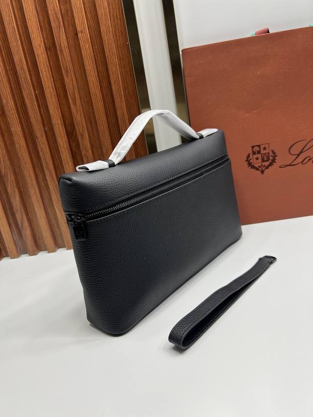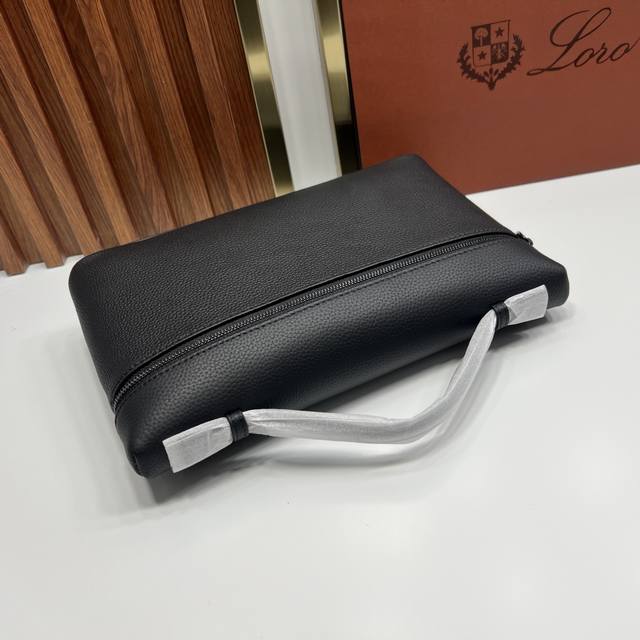 Nuoyou Pianya 1338-7 Extra Pouch Men's Clutch Bag (Ddd) is crafted from premium top-grain cowhide. This versatile and functional handbag features a detachable leather wrist strap and a zipper pull adorned with a tonal Loro Piana logo, exuding refined elegance. (Ddd Dimensions: 29*18*5Cm) Black (Ddd)