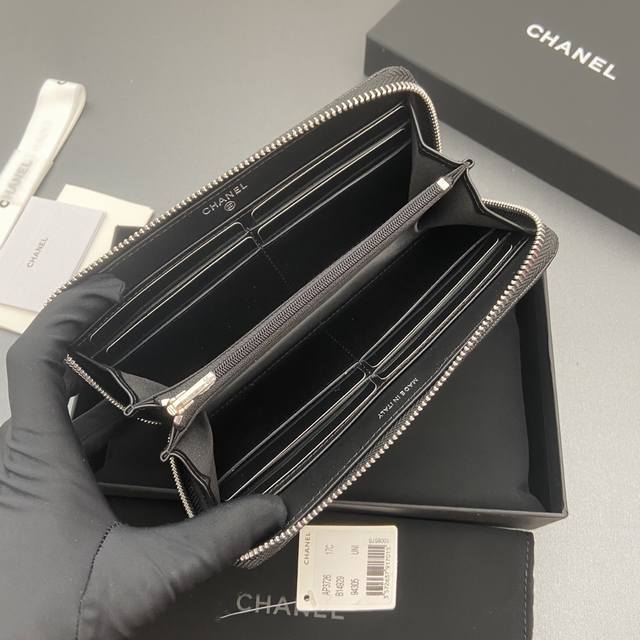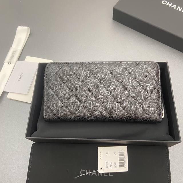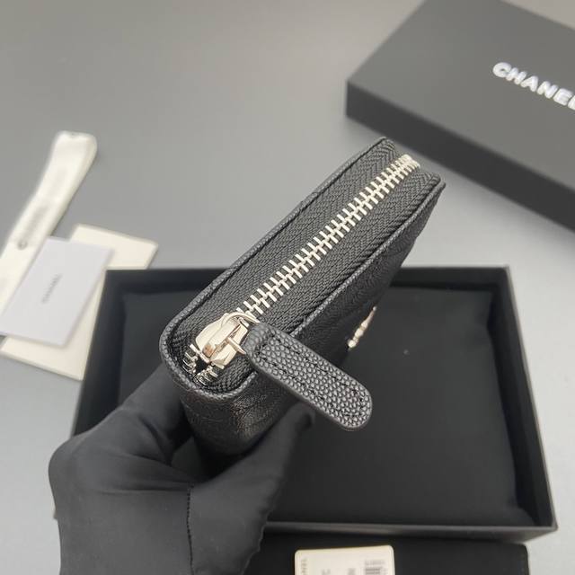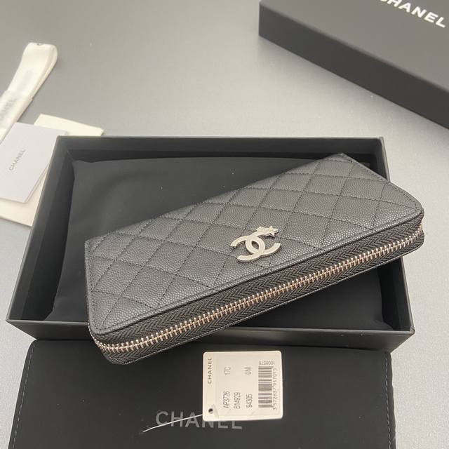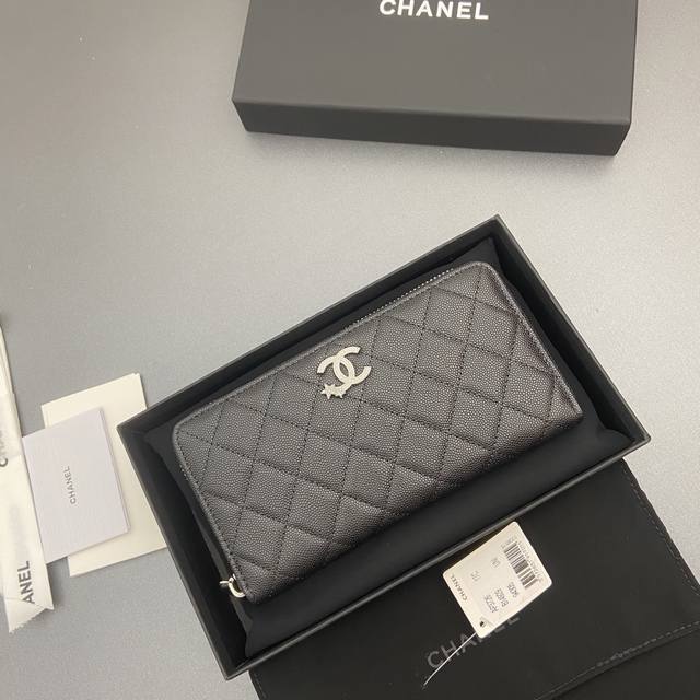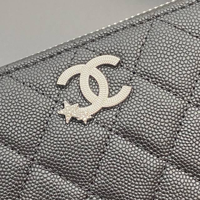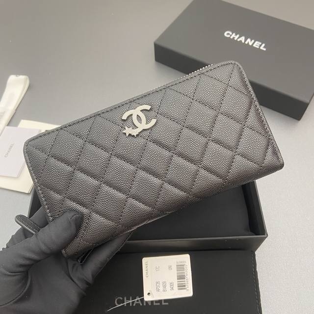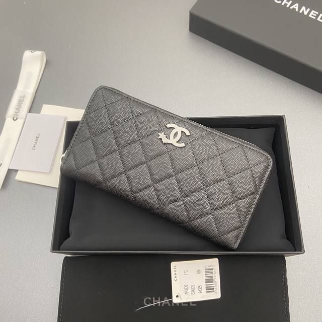 Original Leather Bag, 25B New Series Caviar Cowhide with Star Logo, Sparkling Blingblibg~ Zipper Bag Series, Black with Fine Ball Texture and Silver Star Hardware, 12 Card Slots, Two Bill Compartments, Two Compartments, 1 Zipper Pouch. Item Number: 3726. Dimensions: W19