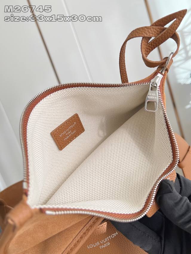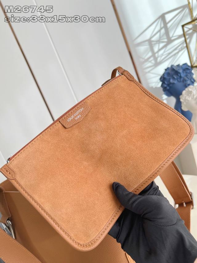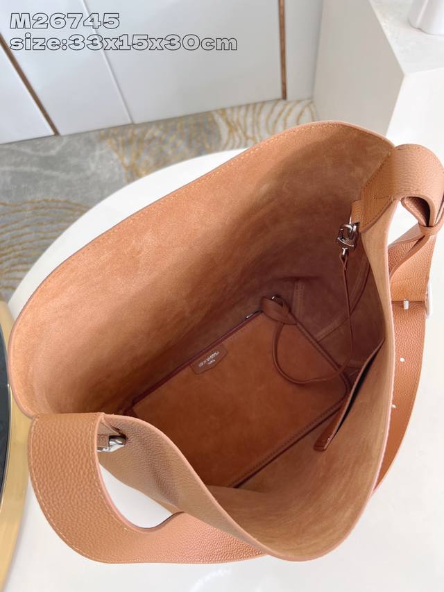 Original Leather Ddd Exclusive Real Shot M26745 Brown Verso Hobo Handbag. This bag features a trendy and versatile design crafted from LV Touch cowhide leather. The smooth grain leather and tonal suede give it a distinctive look on both sides. Each side pocket is subtly accented with V-stitching, and a detachable suede pouch adds further functionality. 33 x 15.5 x 30 cm (H x W x Length) DDD