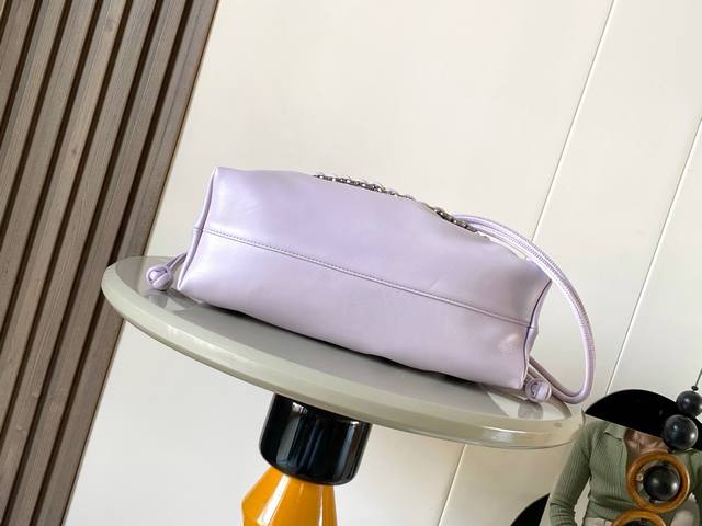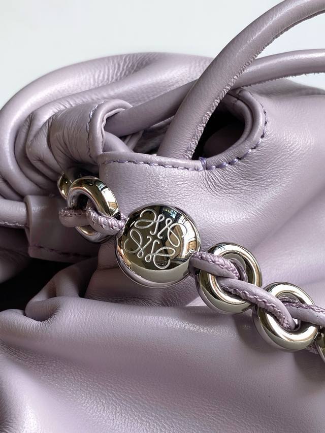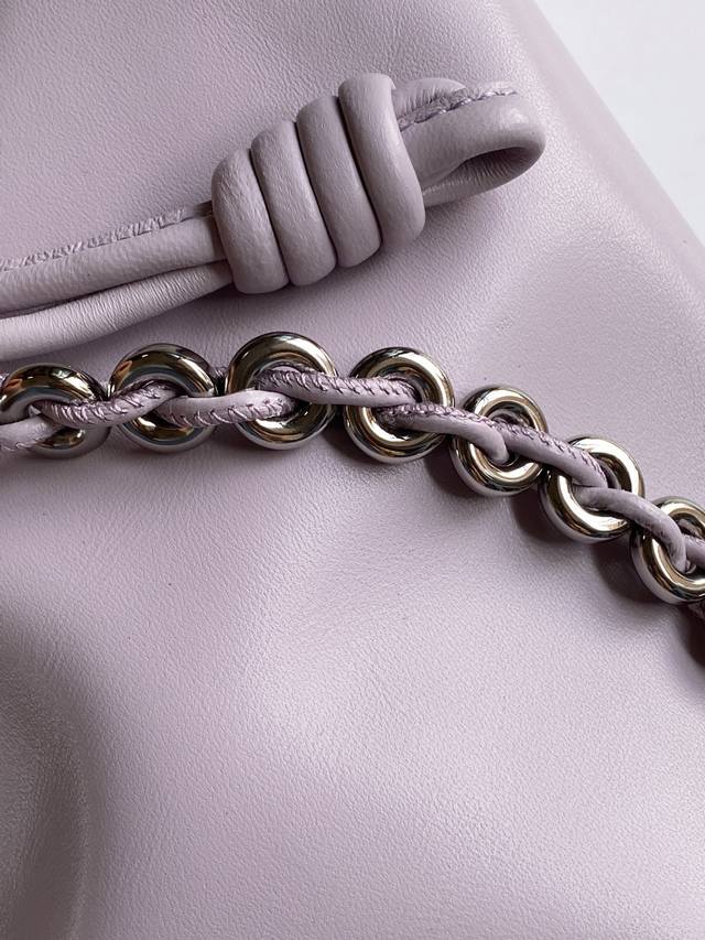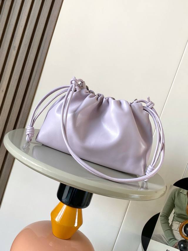 Original Leather Flamenco Purse Clutch Bag, Celebrity Style, Soft Nappa Lamb Leather. The new Flamenco Purse clutch bag features a pleated design and key details such as the iconic rope knot on the sides. Stylish and versatile, it can be carried as a clutch, shoulder-carrying with the donut chain, or crossbody with the leather shoulder strap. This version is made of soft Nappa lamb leather. * Can be carried on the shoulder, crossbody, or by hand * Detachable and adjustable leather shoulder strap * Detachable donut chain with Anagram engraved pebble pattern * Discreet magnetic closure * Suede lining * Loewe gold or silver foil stamping Style Number: 9057 Size: 30cm