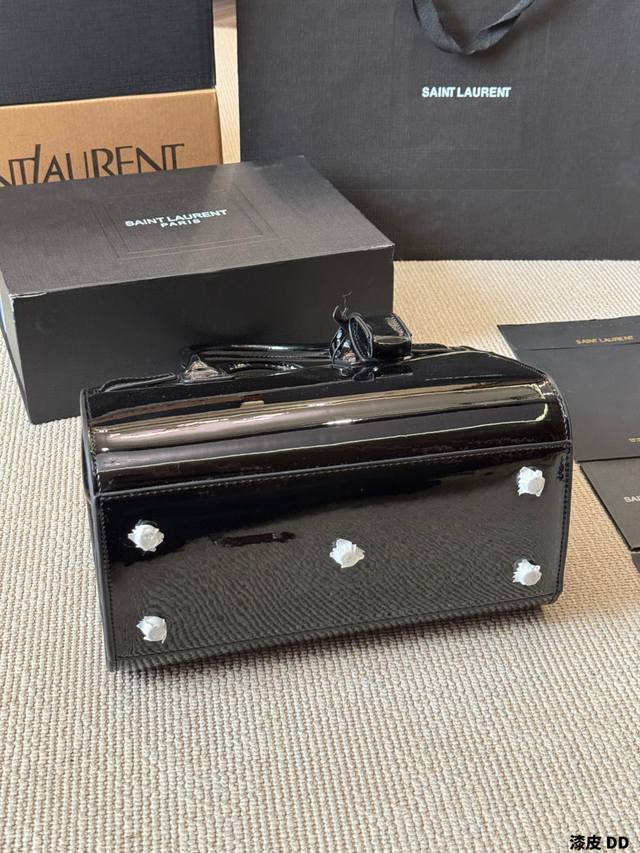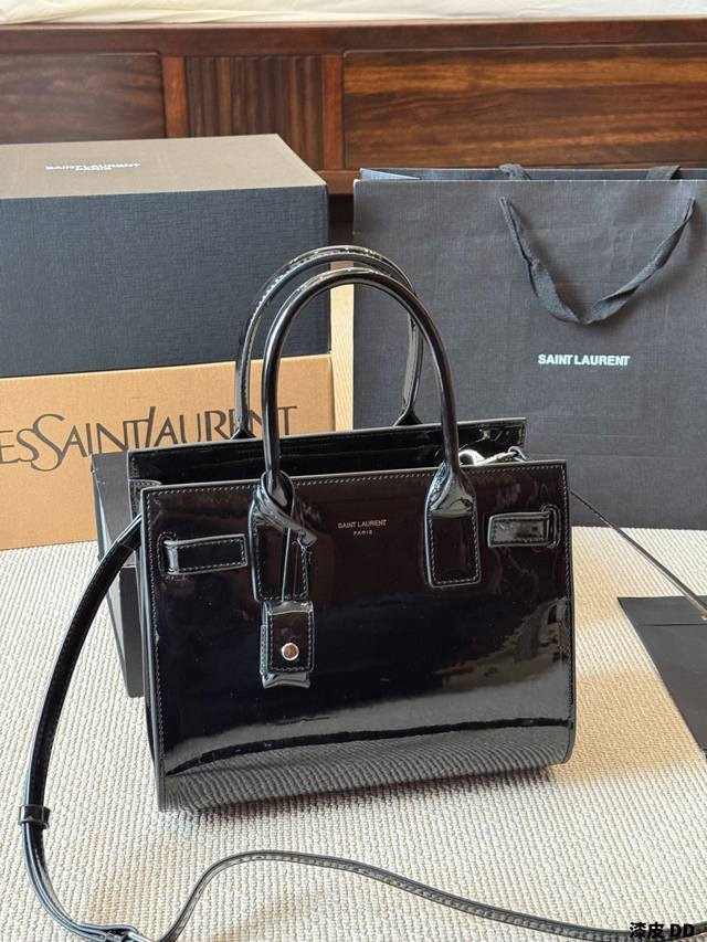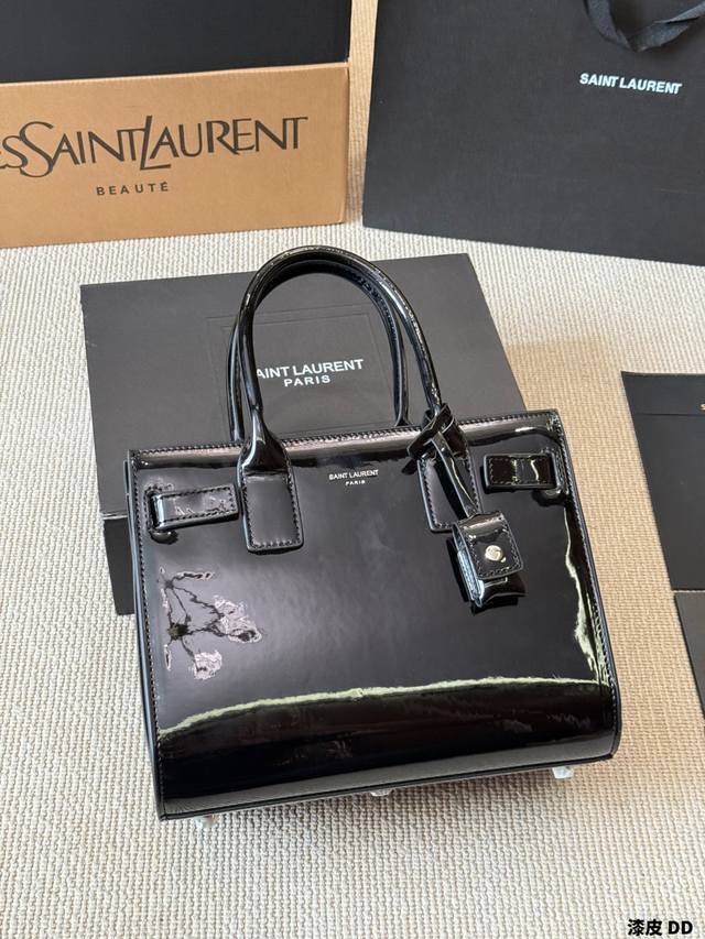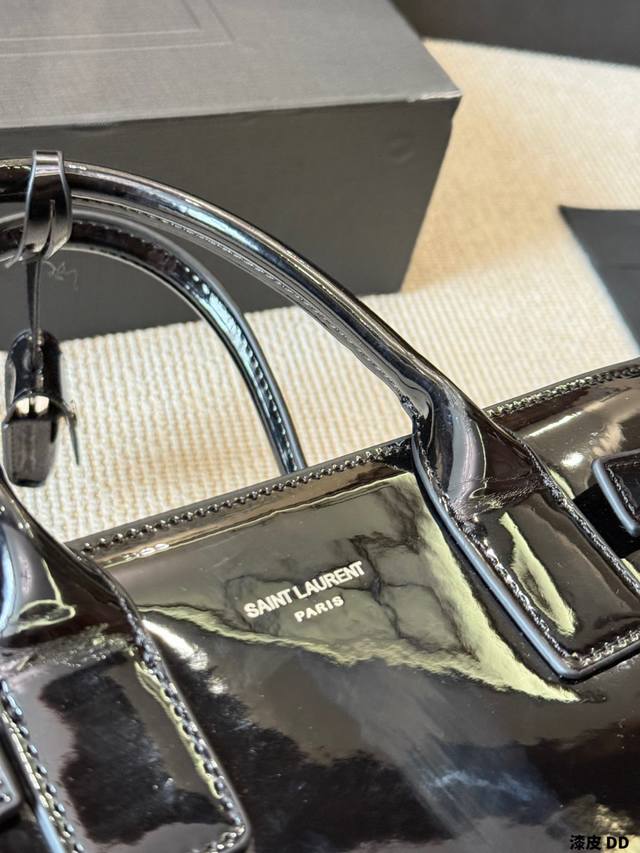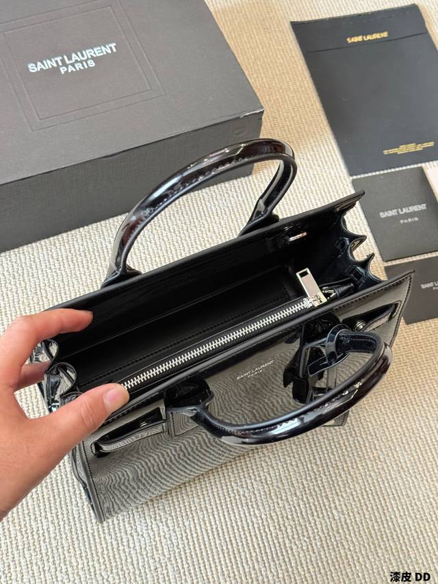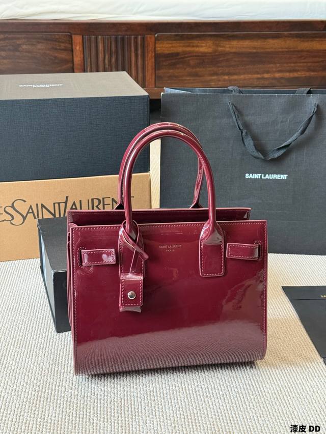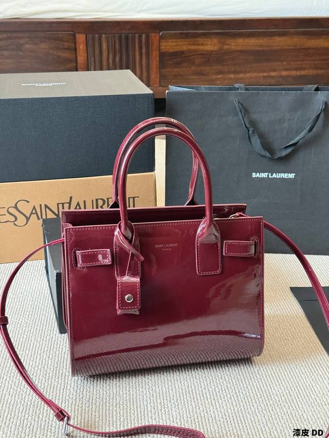 Patent Leather YSL Sac De Jour Nano Patent Leather Accordion Bag. Glossy patent leather with metal hardware, simple yet sophisticated and incredibly stylish! The accordion-style multi-layer design offers ample capacity, easily handling both commutes and formal occasions. It can be carried by hand, over the shoulder, or crossbody, making it both practical and fashionable. The red patent leather is eye-catching under light, pairing beautifully with suits or casual wear