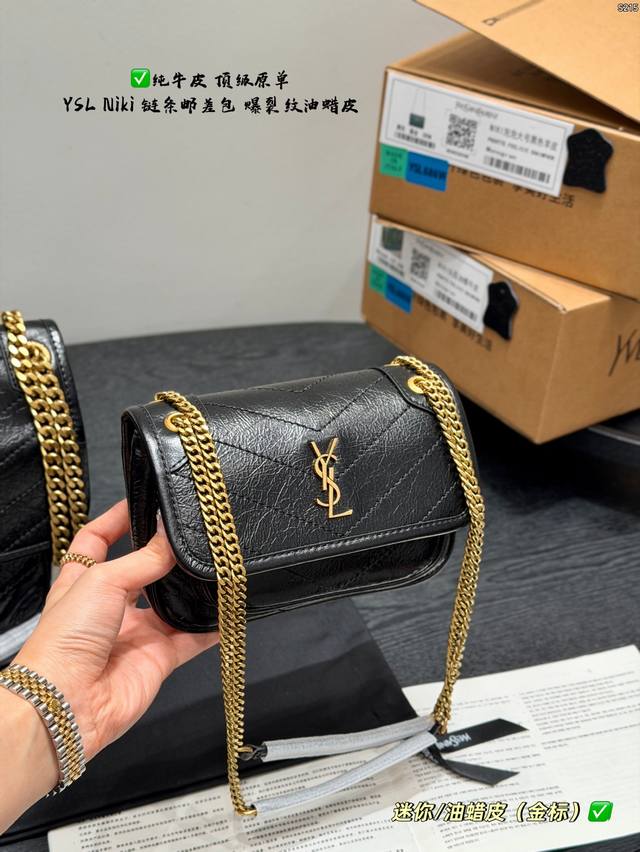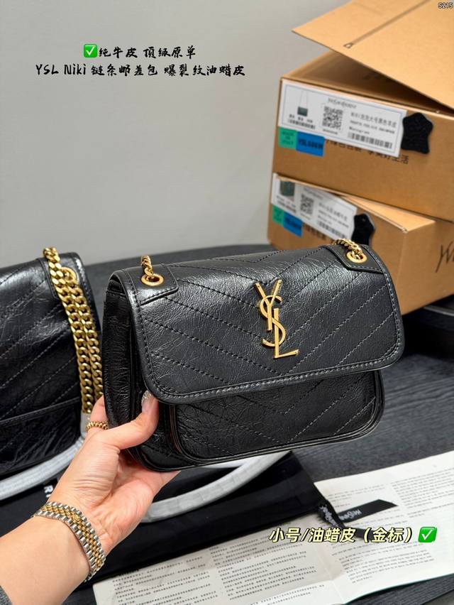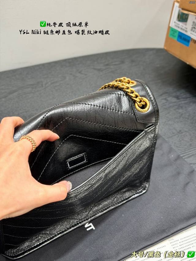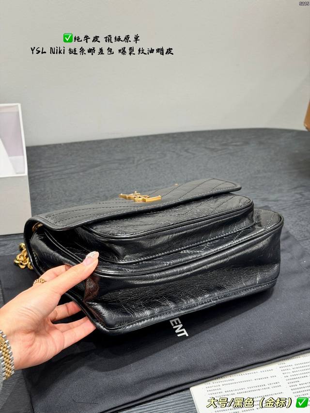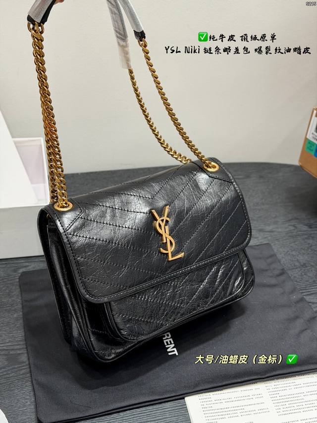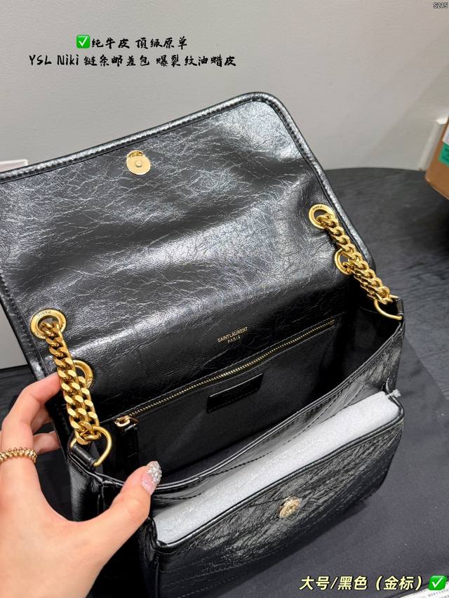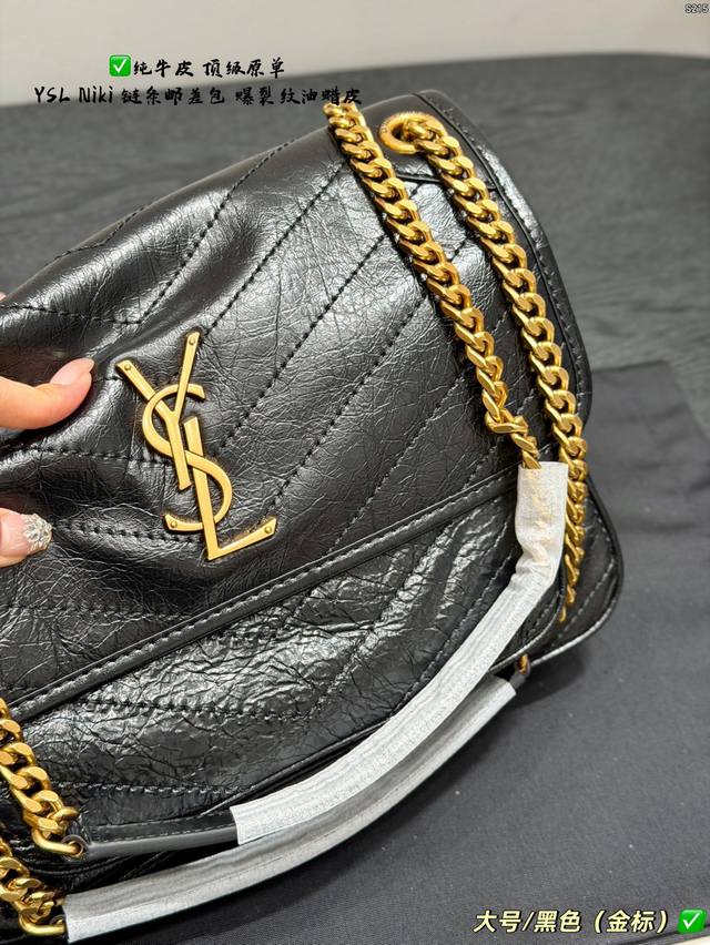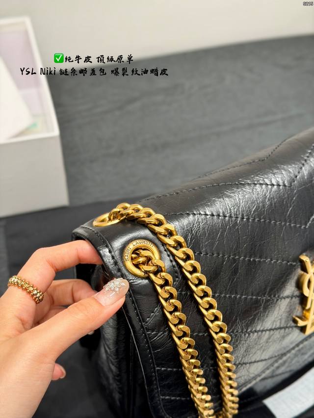 pp Full packaging Ddd Top-grade original YSL Saint Laurent Niki chain messenger bag made of top-grain cowhide with crackled texture and full leather edging Ddd The black and gold color scheme is super classic and has a perfect texture. The gold YSL logo and chain are both retro and fashionable. The chain is adjustable, so you can easily switch between wearing it on the shoulder or crossbody. It's practical and versatile. The black and gold color scheme exudes a high-end feel. It's a best-selling item and a fashion trend. It's really worth buying Ddd Sizes: Large 28*22cm, Small 22*17cm, Mini 18*13cm DDD