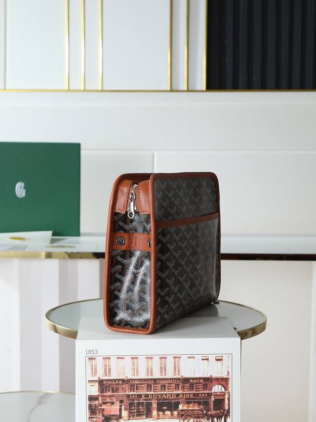 Premium Quality Original Factory Goods Small Goyard Jouvence Toiletry Bag. The Goyard Jouvence toiletry bag series has always been a classic of Goyard's lifestyle and travel art! Handcrafted from cowhide with a yellow lining, featuring an inner and outer compartment design, it's simple, lightweight, sturdy, and durable. The clean and tidy lining and elegant and stylish appearance make it an indispensable functional product for travel. The large toiletry bag is the perfect choice for large-capacity storage. The small toiletry bag is for quick touch-ups and can also be used as a small wallet or clutch. It represents Goyard's practicality and urban style. Model: 0 5 Ddd Size: 25X18