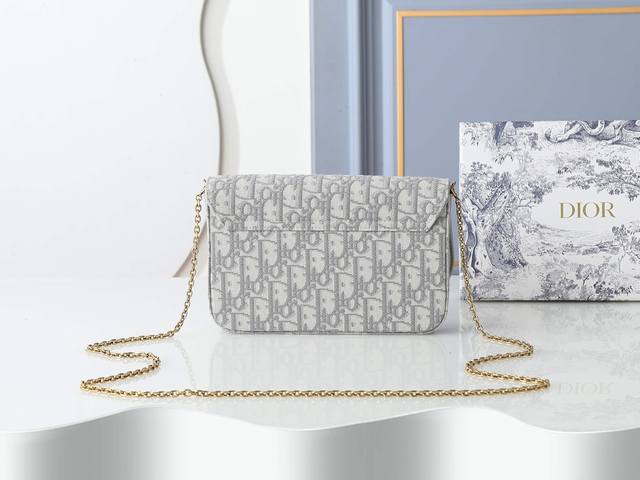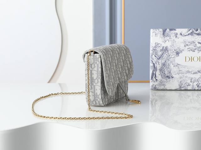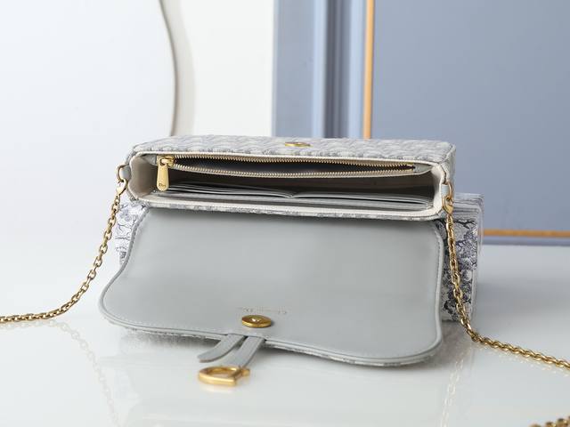 Style No. 5907 Medium Grey Chain Handbag with an asymmetrical flap and vintage gold-finished metal stirrup D-shaped charm. Features one compartment, six card slots, one slip pocket, and one zip pocket. Dimensions: 21.5cm-13.5cm-4.5cm.