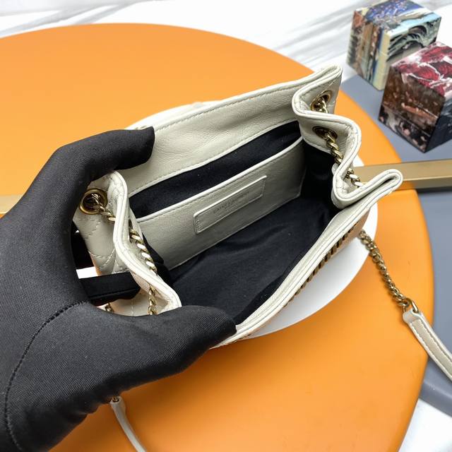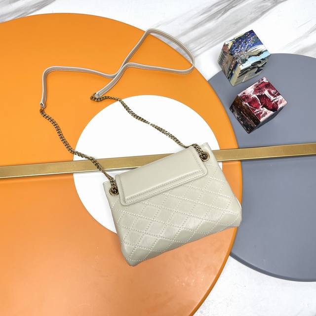 The Mini Nolita, a return style that became an instant hit online upon release! Its smaller size makes it even more exquisite and charming, especially suitable for petite girls. It's small yet stylish, a tiny bag that can hold the whole world! The metal letter logo paired with a gold chain and leather strap allows for versatile carrying options: shoulder, crossbody, or underarm. The lambskin is soft and comfortable to the touch, and looks amazing on! The retro flap envelope design with diamond quilting exudes a classic and tranquil charm, making it instantly appealing. Size: 18X13X6Cm Style Number: 672738.Zx