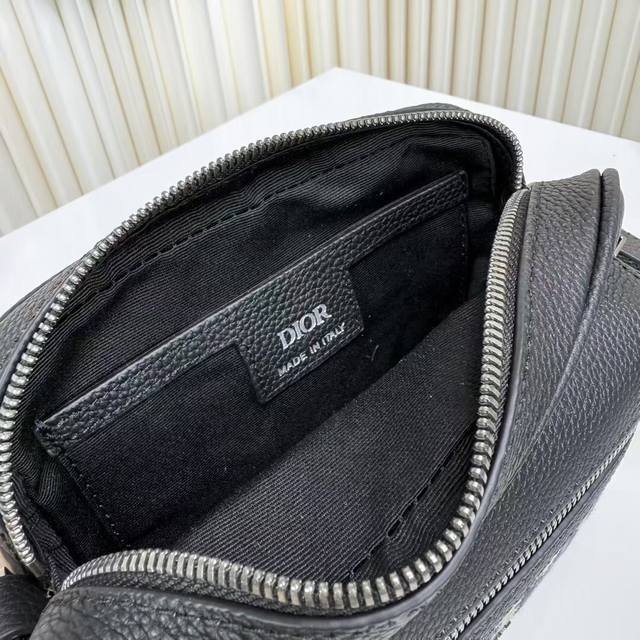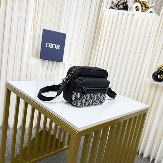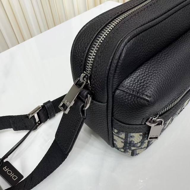 Top-quality original product on the market. Guaranteed imported top-grain cowhide, rejecting split leather and microfiber leather. Mini Rider 2.0 Zippered Messenger Bag. Black Oblique printed fabric and black grained cowhide leather. Item number: 2Esws034Yks_H03E. This Rider 2.0 zippered messenger bag is a new addition to the 2024 Winter Men's Collection. Practical and sophisticated, it's an ideal everyday item. Crafted from black Oblique printed fabric and other materials, it features tonal grained cowhide leather details for added style, and a Dior logo on the front. The mini version includes a zippered compartment and a front zippered pocket for various personal items, and comes with an adjustable shoulder strap for shoulder or crossbody wear. Body: Cowhide leather, cotton, technical fabric Lining: Technical fabric, cotton, cowhide leather Main zippered compartment Front zippered pocket Back slip pocket Interior slip pocket Adjustable Christian Dior logo nylon jacquard and cowhide leather shoulder strap Front adorned with metallic copper alloy Dior logo Interior adorned with Dior embossed logo Includes dust bag Dimensions: 18.5 x 13.5 x 7 cm (L x H x W) Main compartment can hold 2 mobile phones Shoulder strap length: 81 x 127 cm Shoulder strap tip to bag tip length: 34 x 58 cm